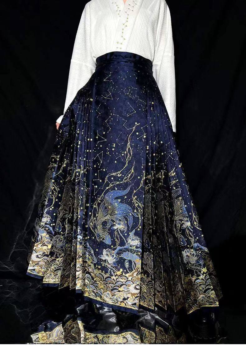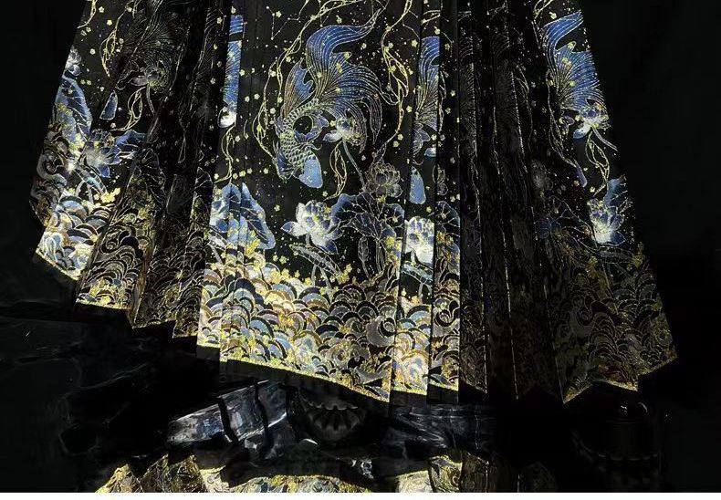 New Chinese-Style Ming Dynasty Hanfu Women's Gold-Woven Floral Horse-Face Skirt, National Style Daily Commuting Petite Half Skirt