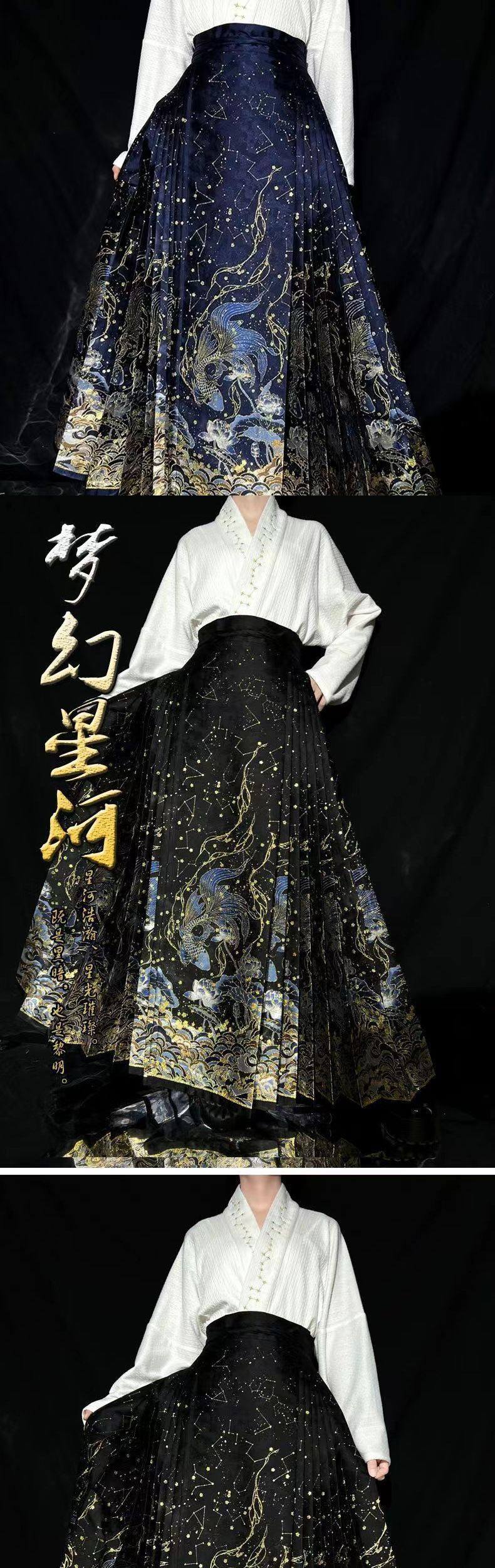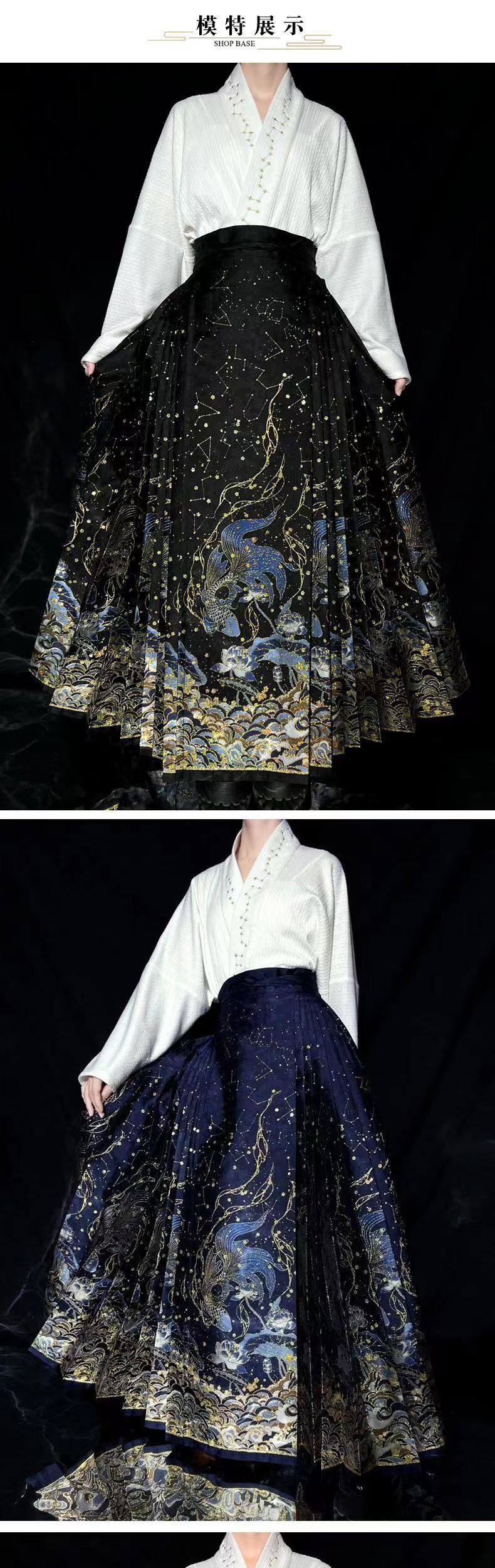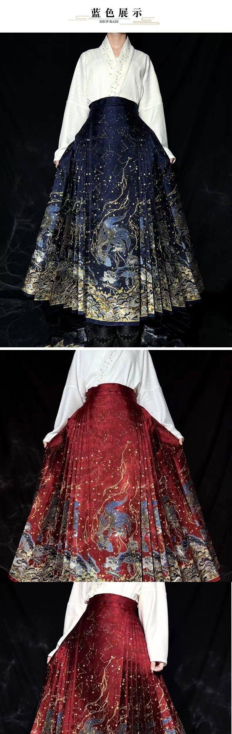 | Color | Black makeup and gold horse skirt (dream),Red makeup flower woven gold horse skirt (dream),Blue makeup flower woven gold horse skirt (dream) |