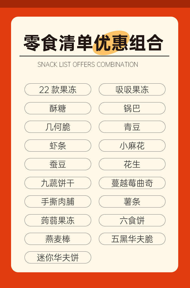 | Packaging specifications | 【50 packs】snack gift pack,【100 packs】snack gift pack,【 2kg 】blind box gift package |