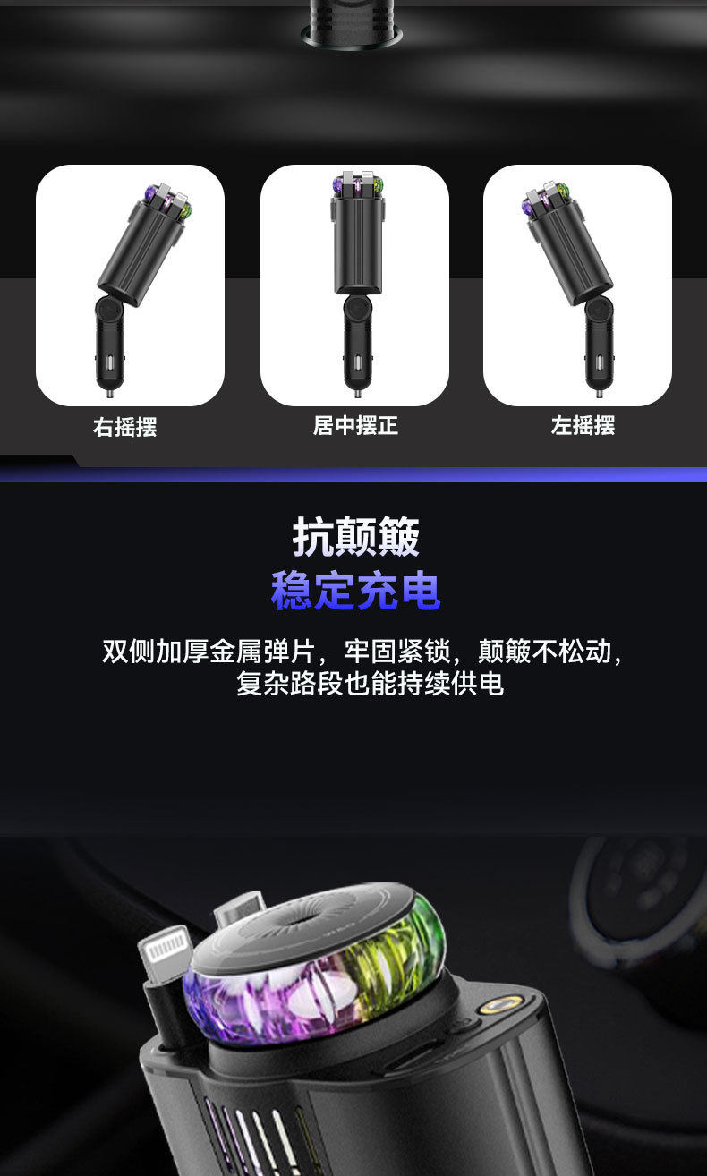 Cross-Border Best-Selling C7 Aromatherapy Car Charger, Low-Temperature Super Fast Charging, Comes with Retractable Cable, Starry Sky Ceiling Car Aromatherapy