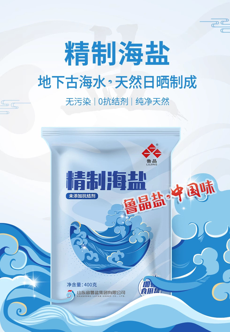 State-Owned Enterprise Produces Luzheng Refined Sea Salt 400g, Non-Iodized, No Anti-Caking Agent, Pure Table Salt, Household Salt, Whole Box Wholesale