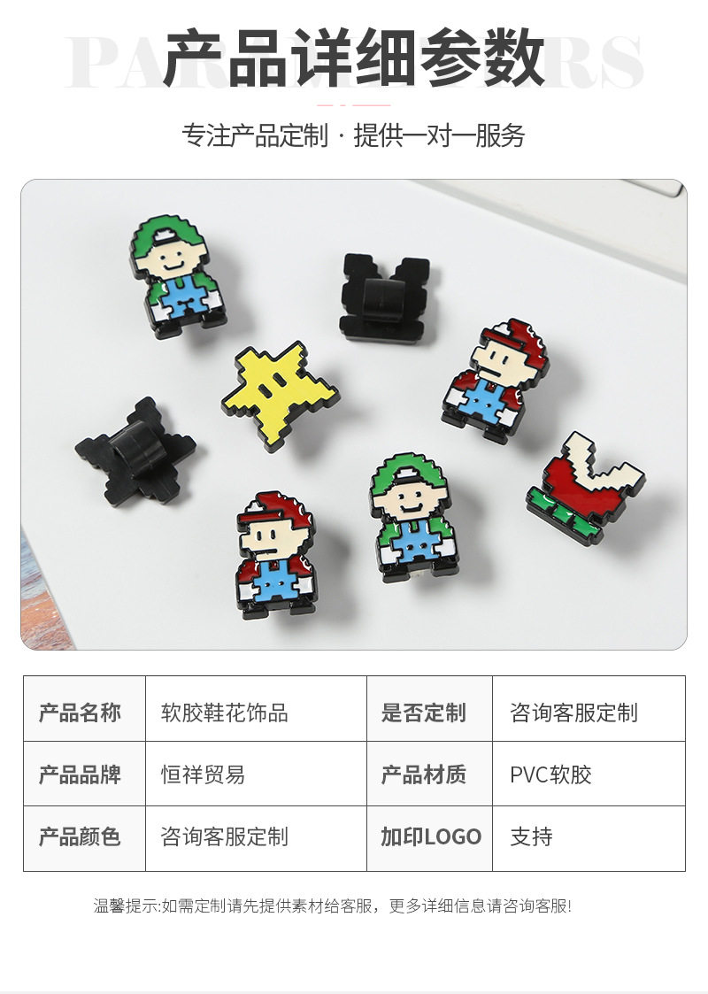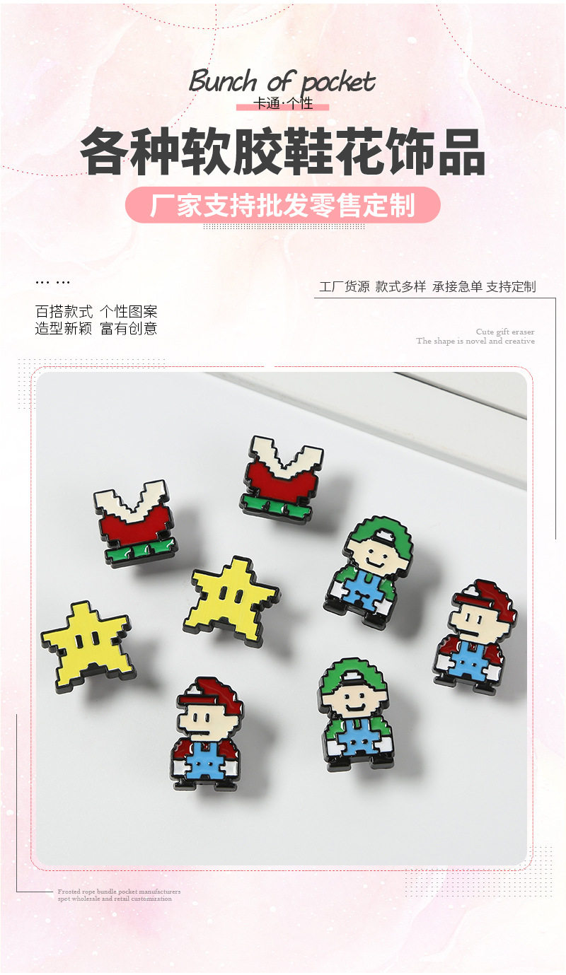 New Cartoon Pixel Mario Clogs Shoe Charms DIY Shoe Buckle Accessories Integrated Buckle 3D Cute Shoe Charms