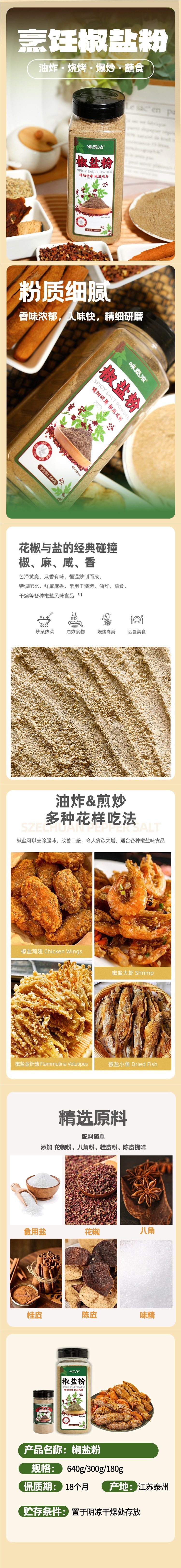 | Packaging specifications | Salt and pepper powder 640g*1 bottle (large bottle value pack),Salt and pepper powder 300g*2 bottles,Salt and pepper powder 300g*1 bottle |
