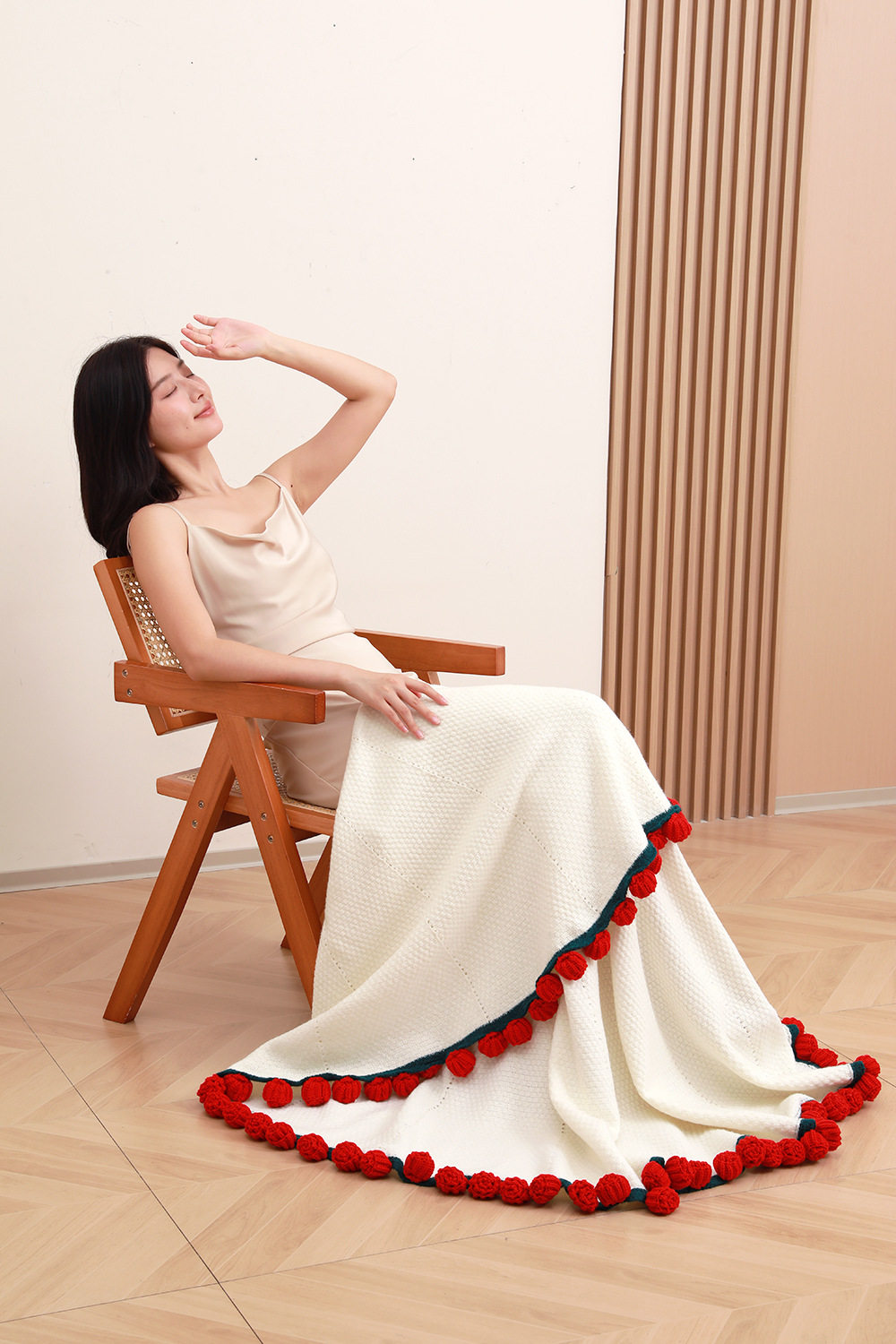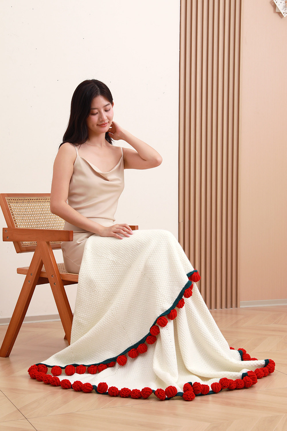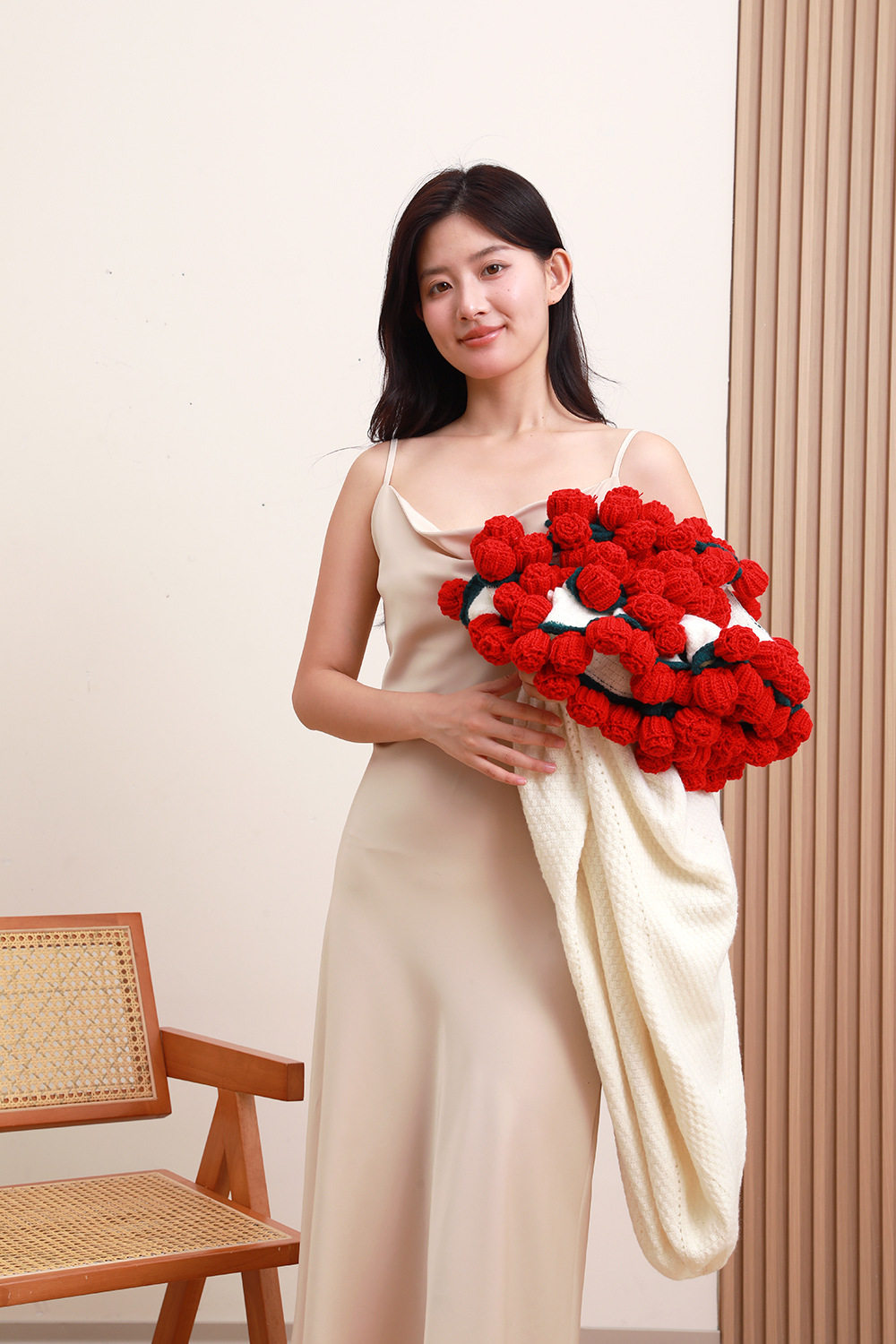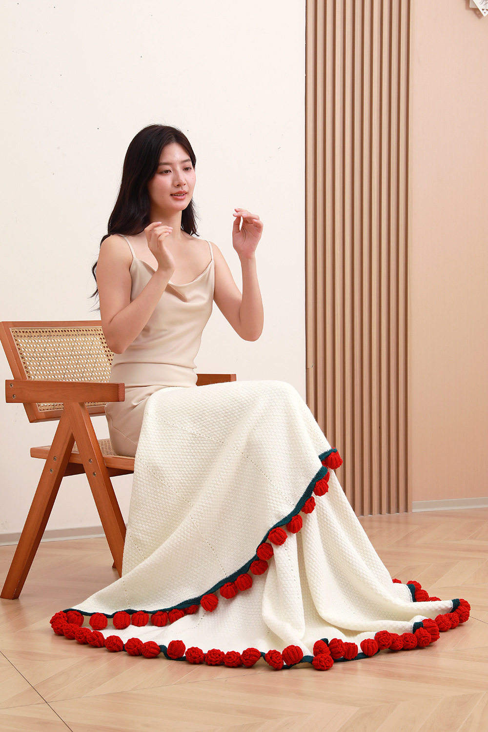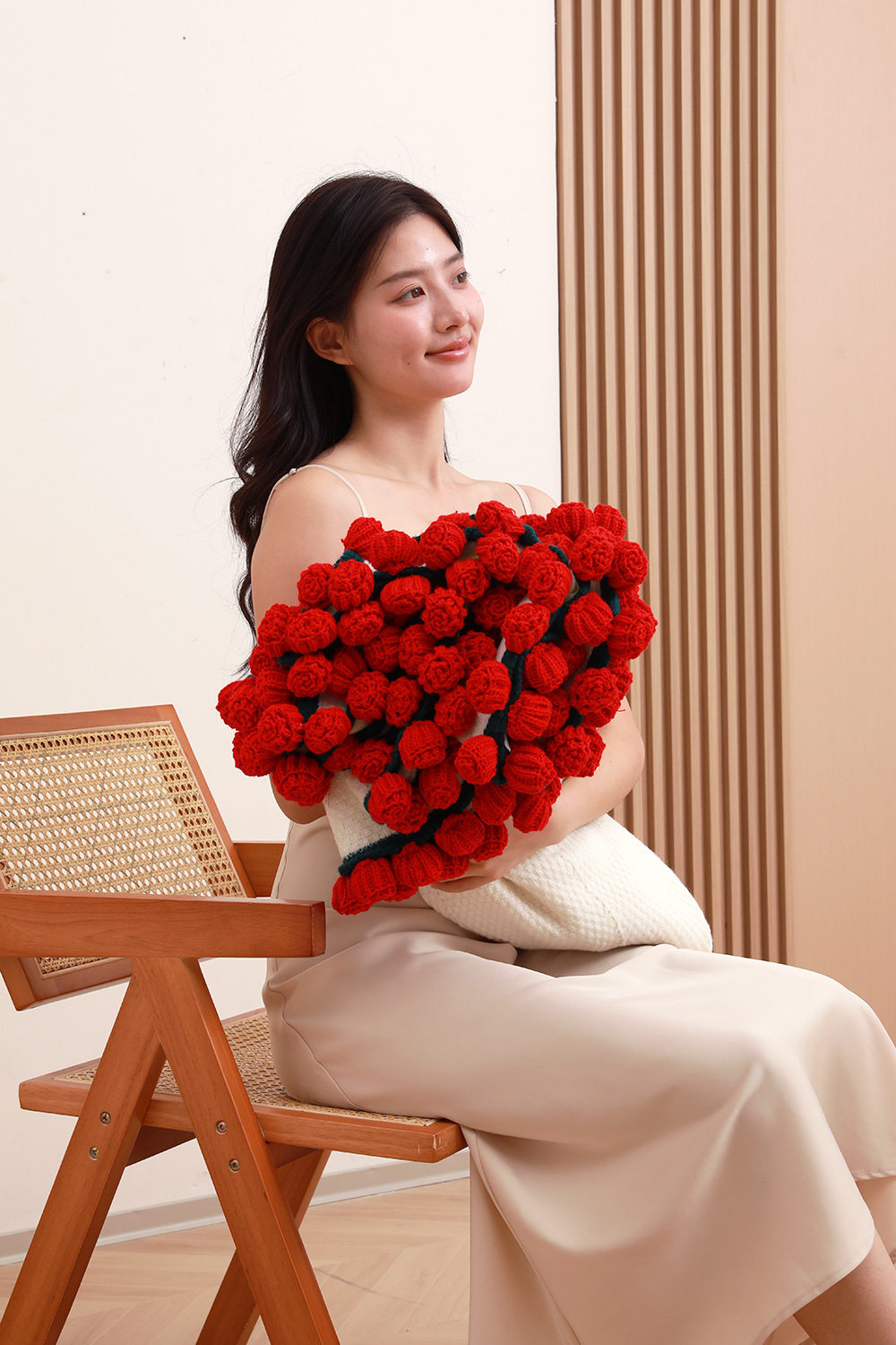 Rose Bouquet Blanket Wool Finished Bouquet Wool Ball Crocheted Flower Blanket Flower Crochet Finished Blanket