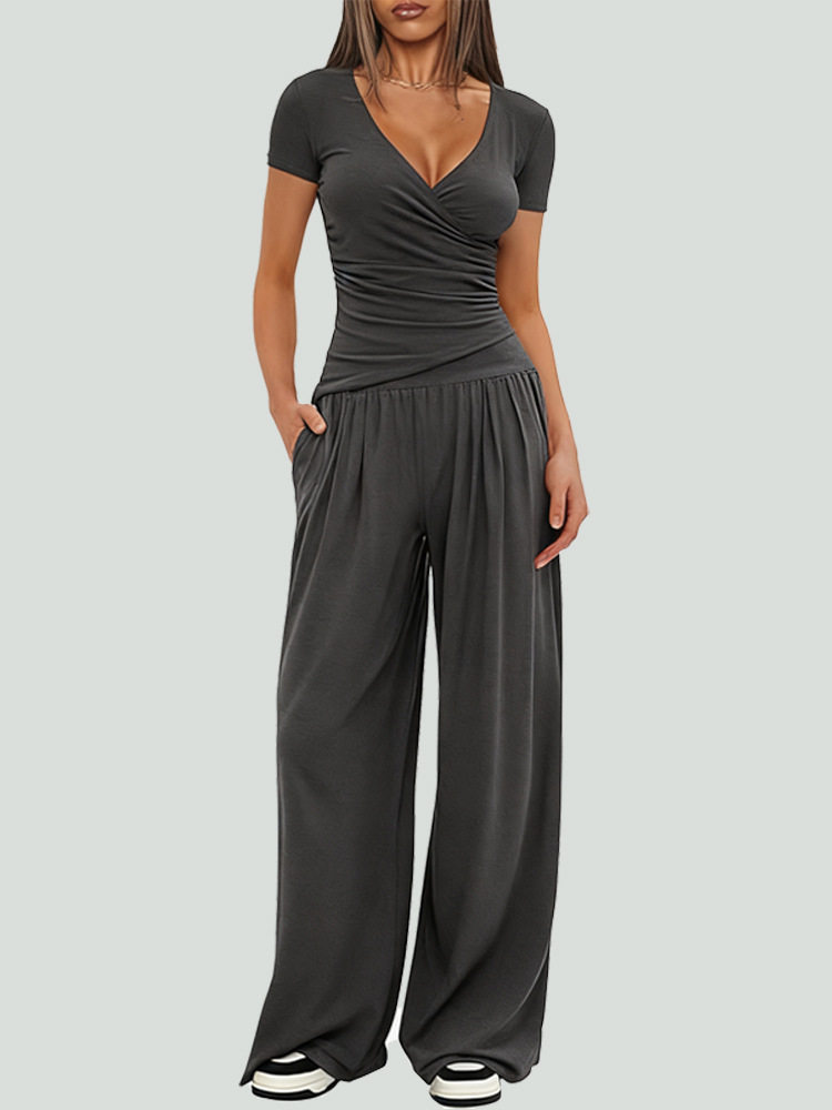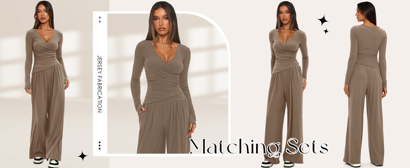 2025 Autumn and Winter European and American Cross-Border Wide-Leg Pants Suit Women's Long-Sleeved Multi-Occasion Sportswear Amazon Best-Selling Model