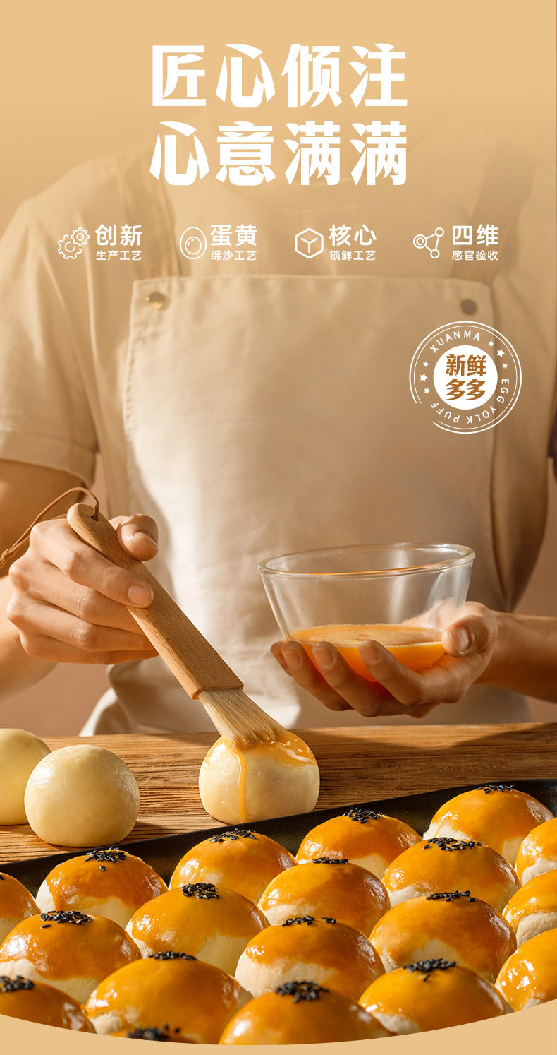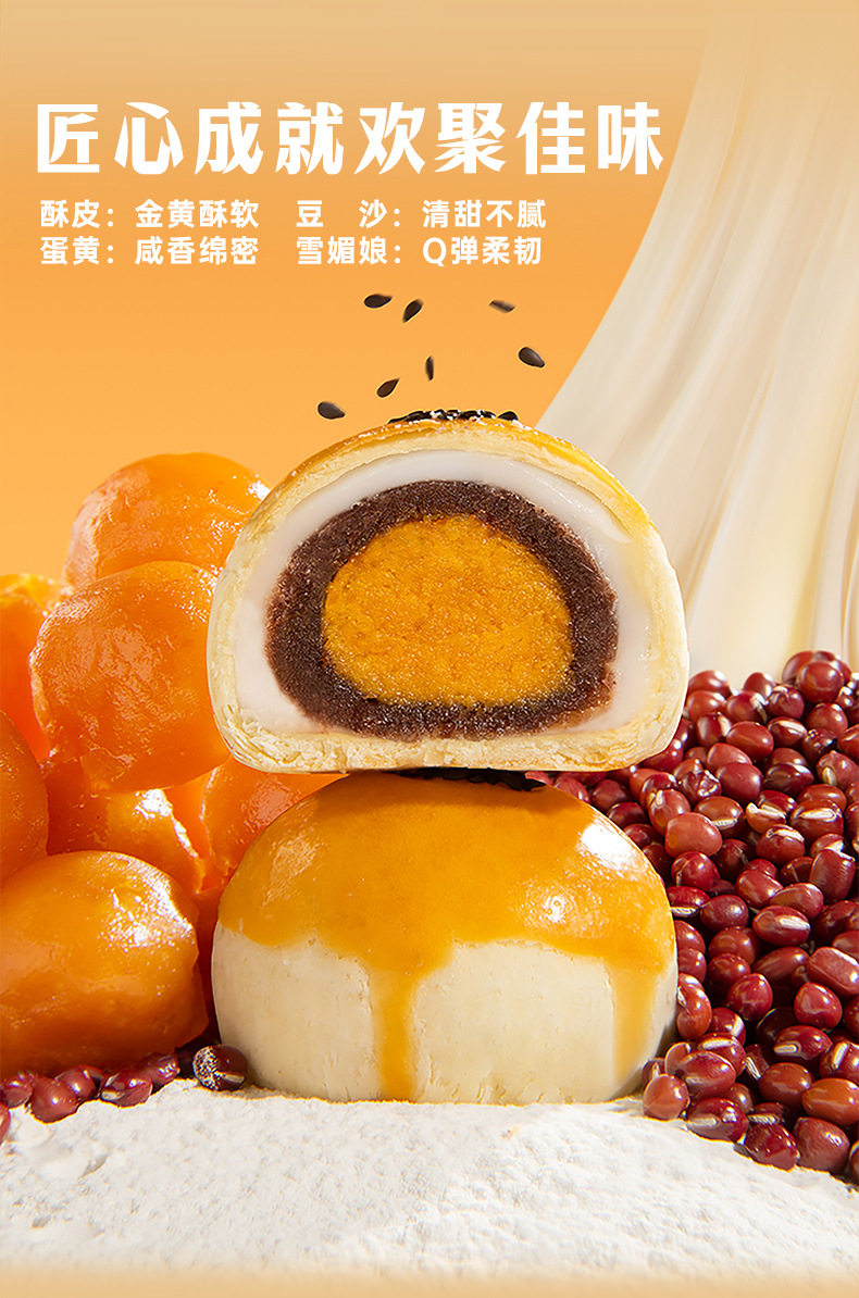Xuanma's Low-Sugar Version of Egg Yolk Pastry with Red Bean Flavor Holiday Gift Box, Snow Pastry Bread, Traditional Pastry, Snack Dessert
