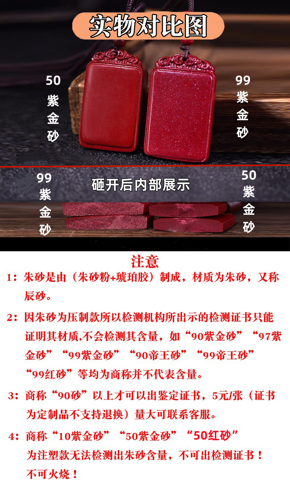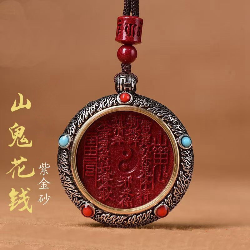 Raw Ore Cinnabar Mountain Ghost Flower Pendant Purple Gold Sand Imperial Sand Zodiac Year Necklace for Men and Women Factory Direct Sales and Dropshipping