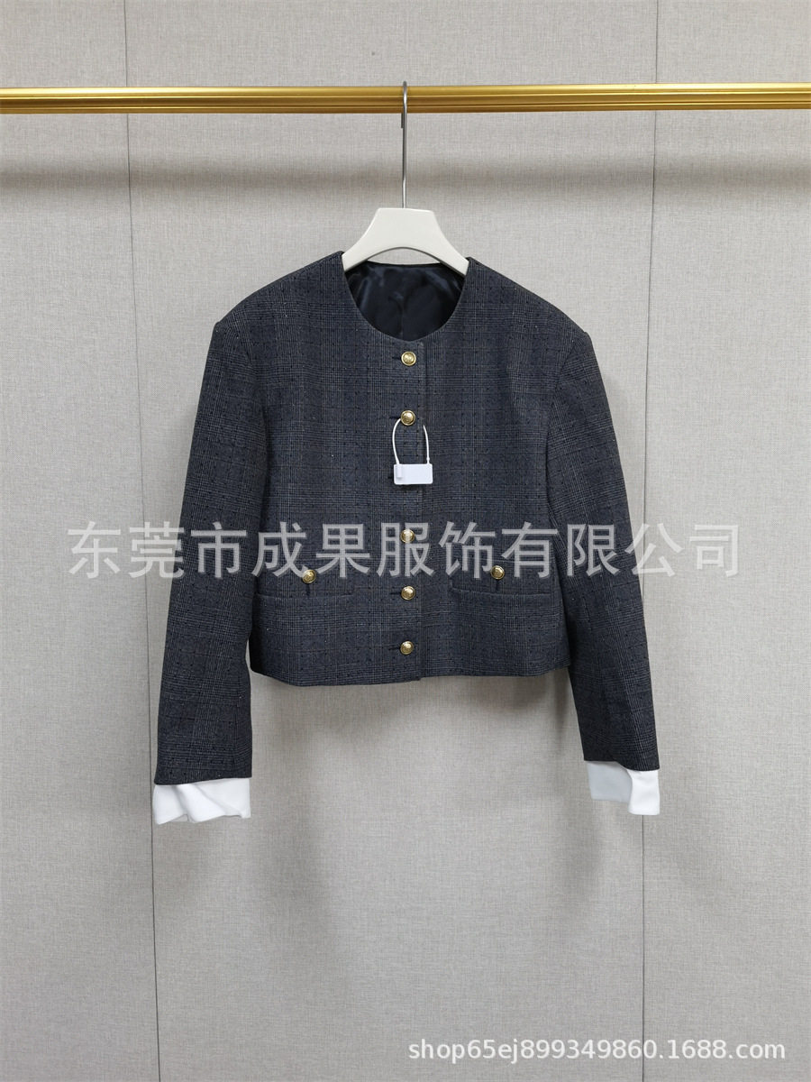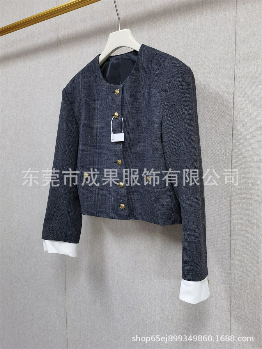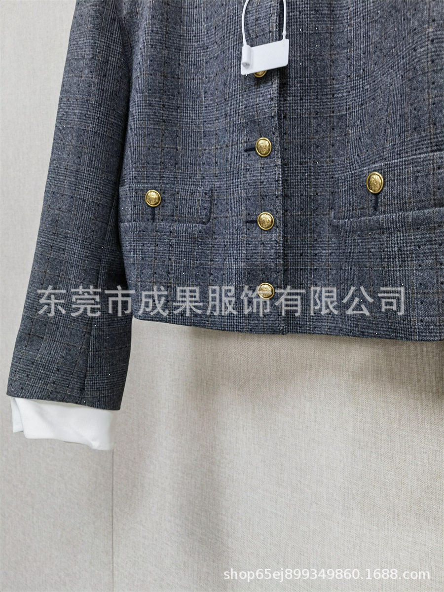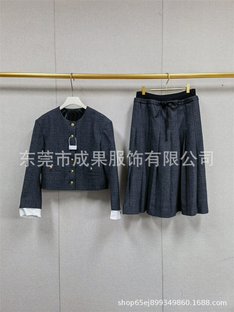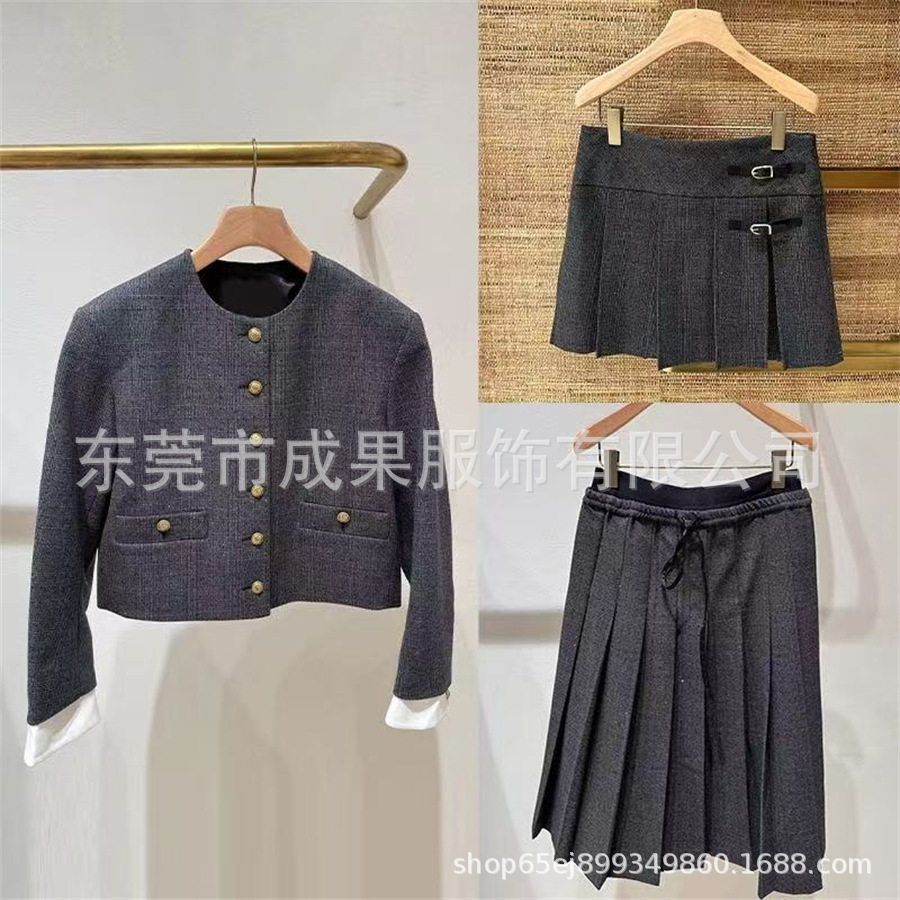 French Niche 2025 Early Autumn New Retro Plaid Round Neck Elegant Short Jacket Pleated Skirt Suit