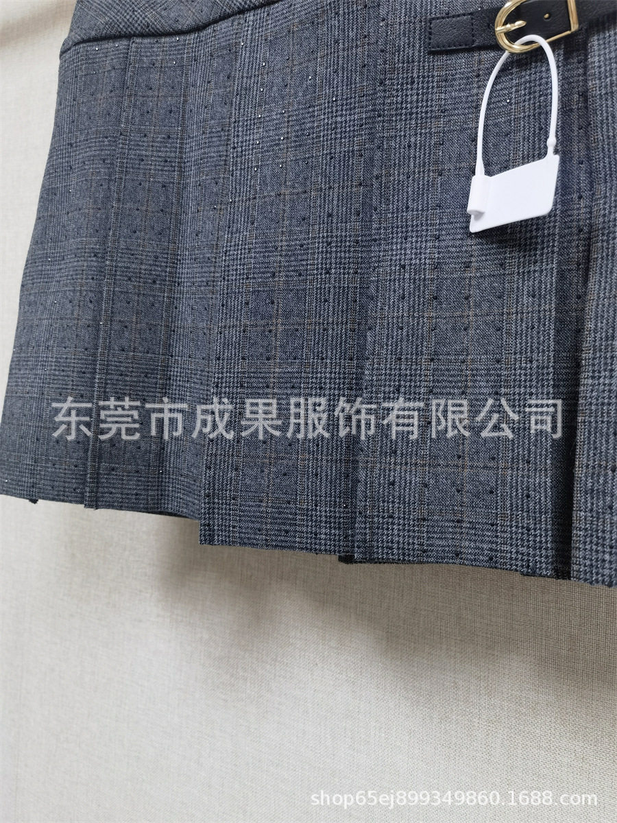 | Color | Dark plaid hot diamond round neck jacket,Dark plaid hot diamond lace-up long skirt,Dark plaid hot diamond belt buckle short skirt |