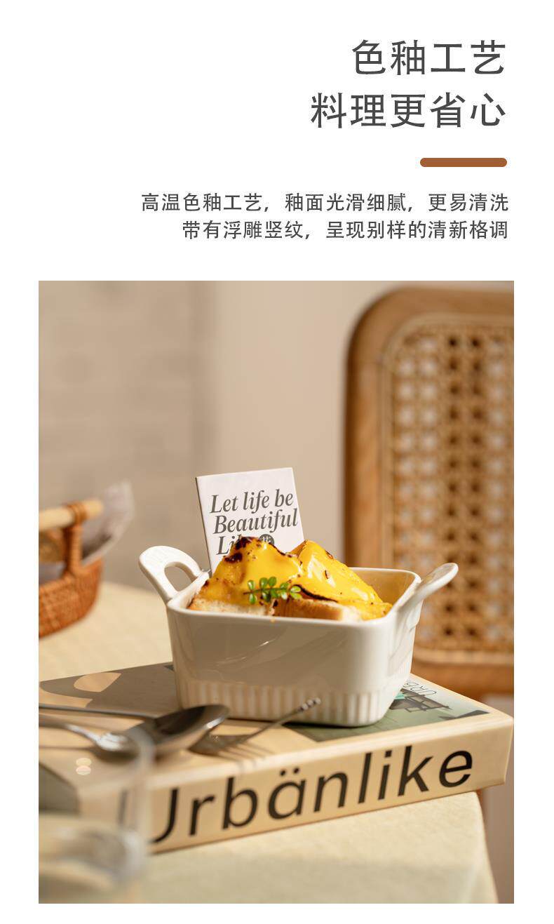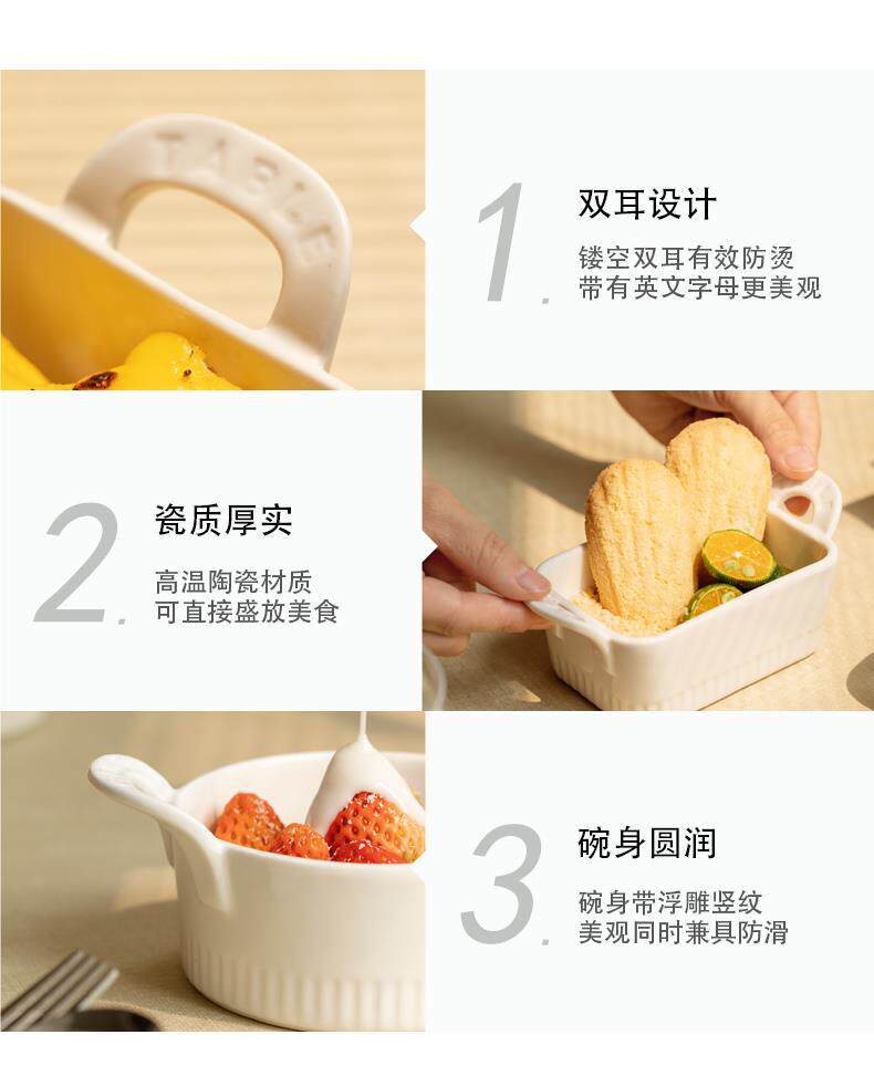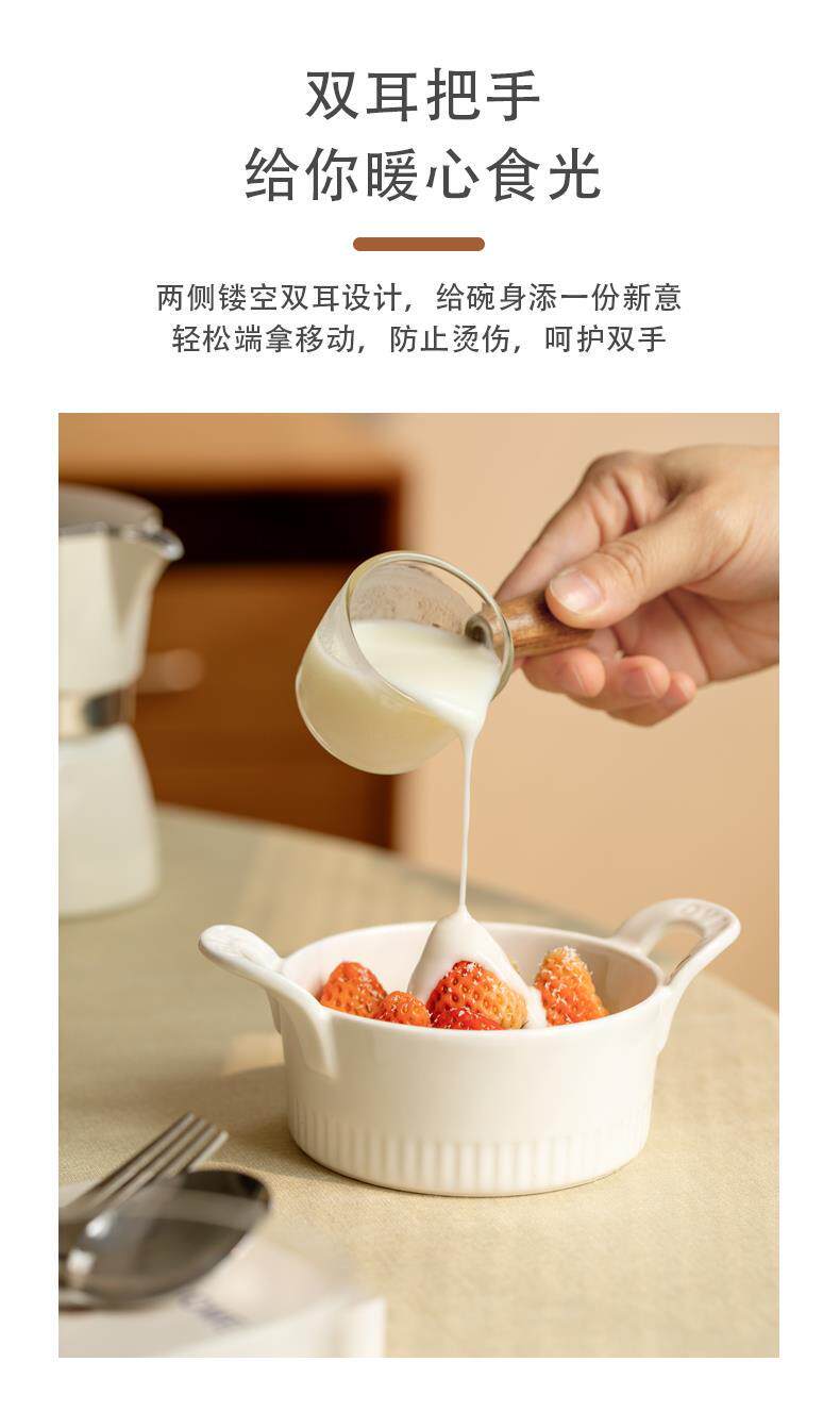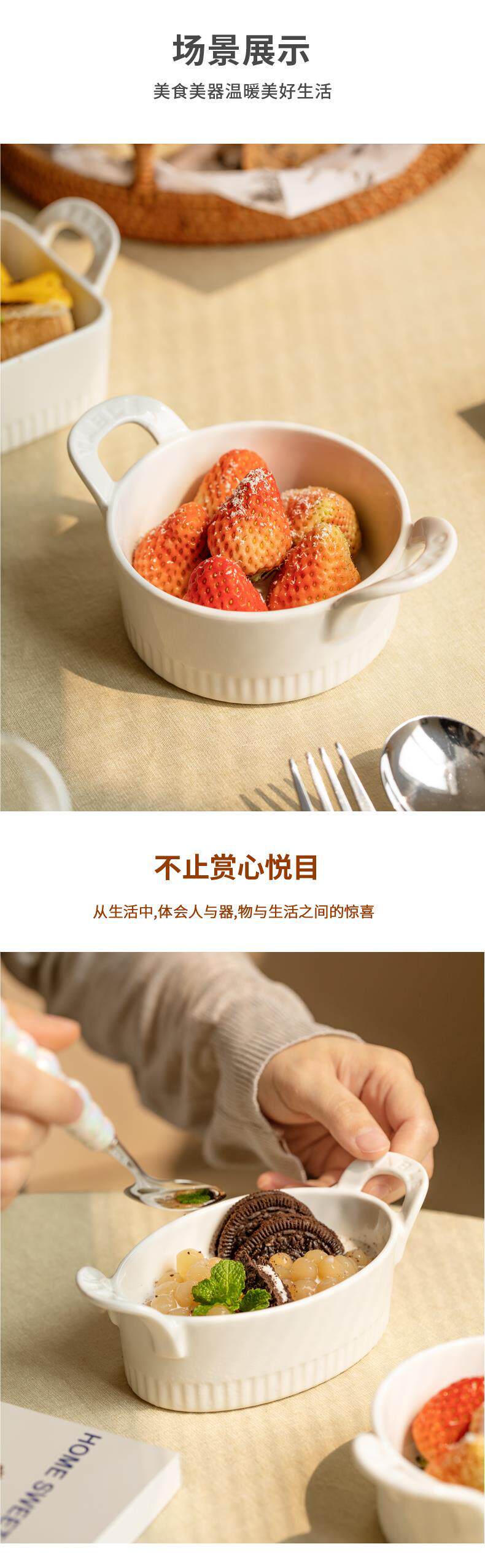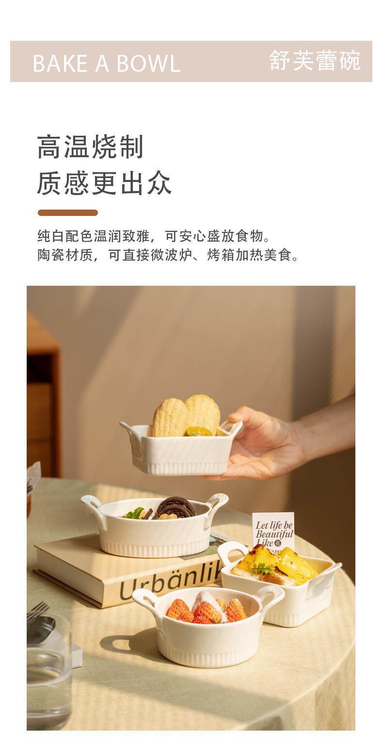 ⭐ Simple Soufflé Double-Eared Baking Bowl Oven Baking Dessert Pudding Steamed Egg Bowl Air Fryer Commercial Ceramic Small