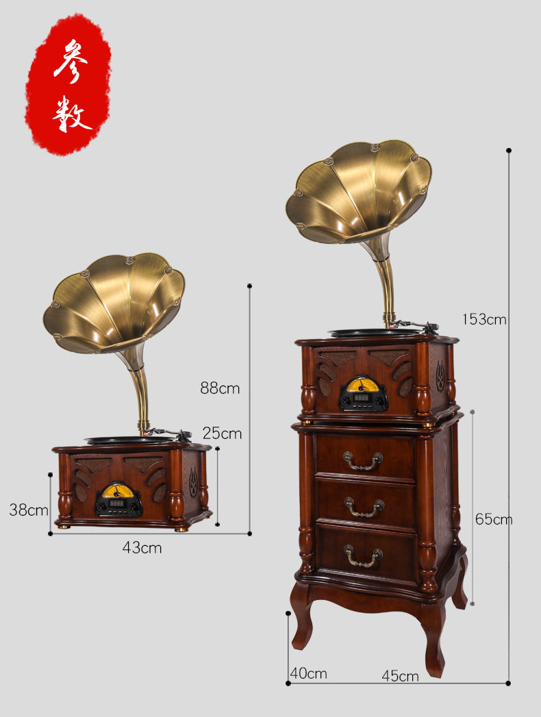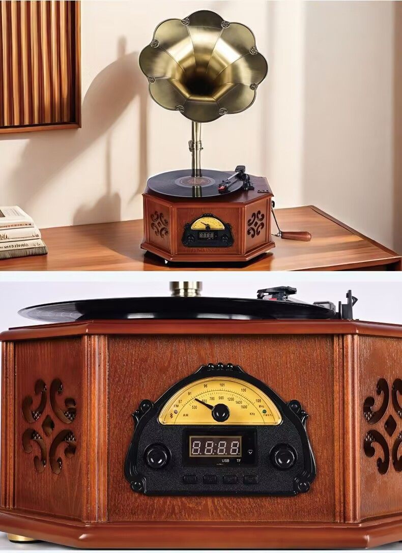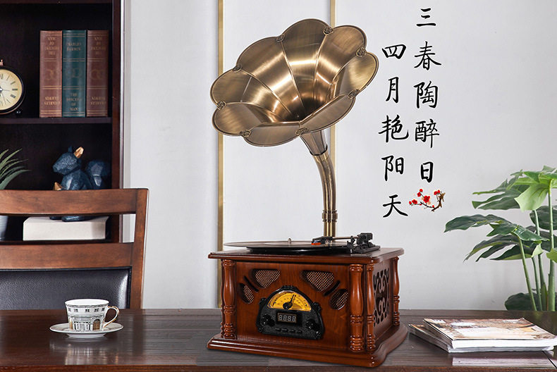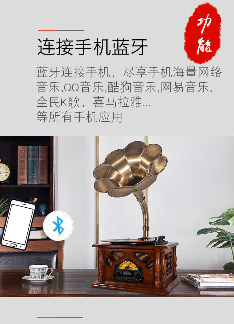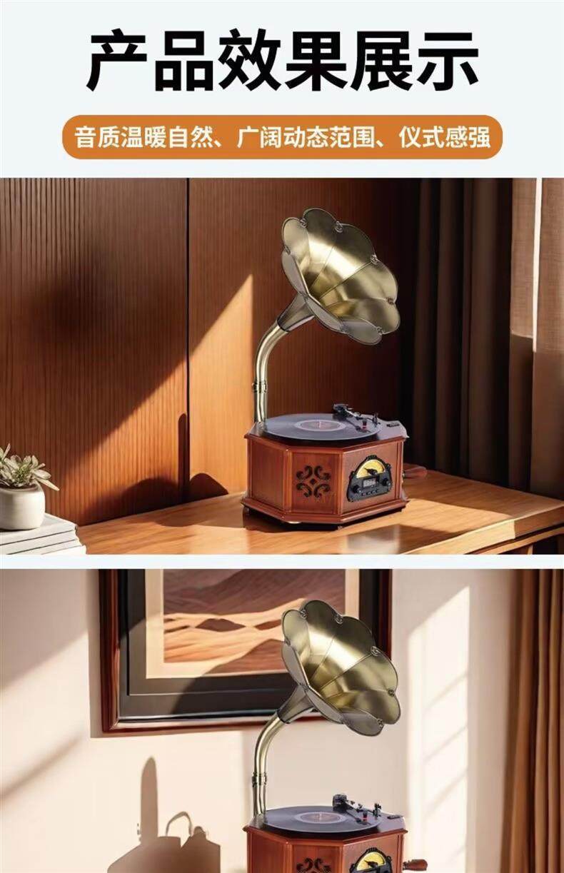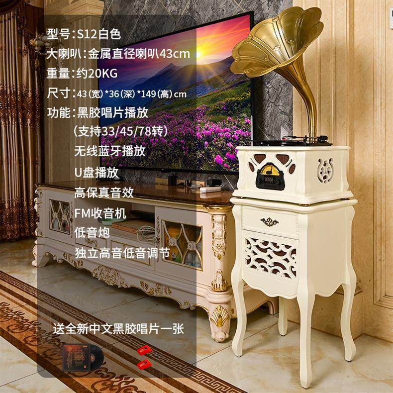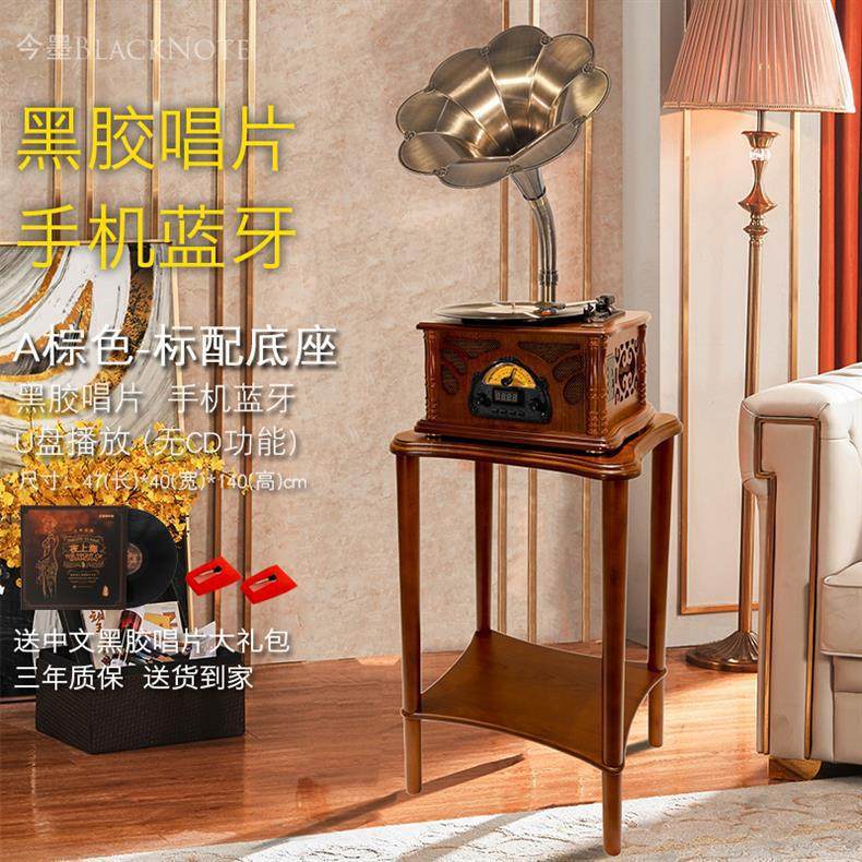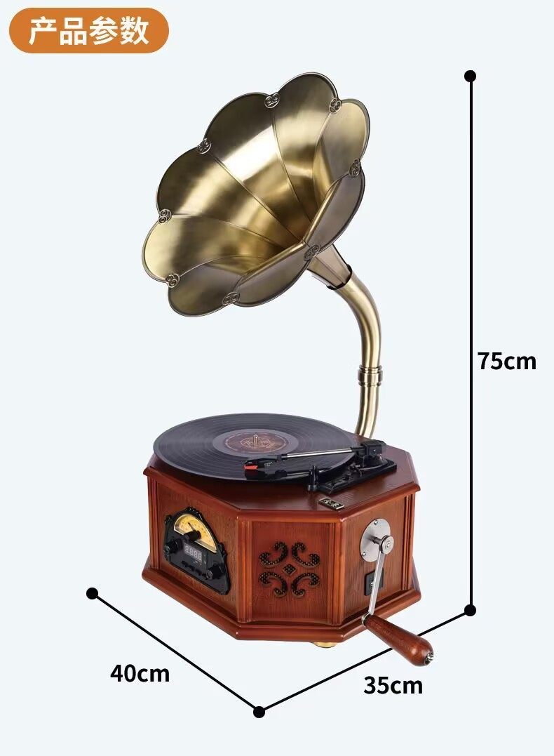 Retro Gramophone Vinyl Record Player Classical Old-Fashioned Record Player Large Speaker Bluetooth Audio Living Room Decoration Ornaments