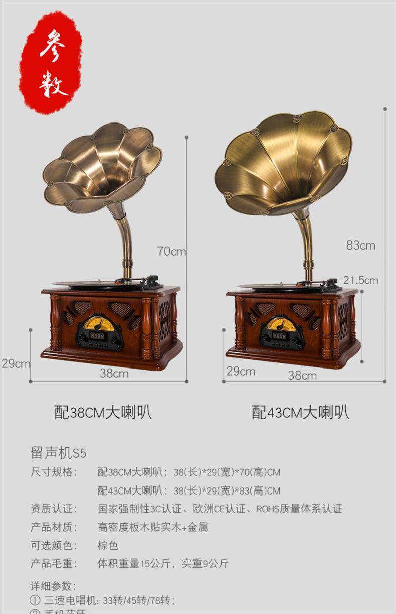 | Color | Model a brown + subwoofer + plug-in model comes with genuine vinyl record,Model a brown + 52 pure copper speaker + subwoofer + plug-in model comes with genuine vinyl record,S7 brown upgraded model + subwoofer + rechargeable and plug-in dual-use genuine vinyl record,S7 white + charging and plug-in dual-use model + genuine vinyl record diameter 38cm large speaker,S7 dark green + charging and plug-in dual-use model + genuine vinyl record diameter 38cm large,Mini brown bluetooth u disk radio function without vinyl function comes with u disk,B01 white with vinyl bluetooth function comes with genuine vinyl record,S5 brown plug-in model + genuine vinyl record diameter 38cm large speakers,S5 retro brown plug-in model + genuine vinyl record comes with genuine vinyl record,S5 brown plug-in genuine vinyl record diameter 42cm large speaker,S9 brown + subwoofer + plug-in model comes with genuine vinyl record,Hand-cranked gramophone + rechargeable + genuine vinyl record diameter 38cm large speaker,K01 brown + plug-in model + karaoke + subwoofer with microphone chinese record,S12 brown + plug-in model + subwoofer base comes with genuine vinyl record,S12 white + plug-in model + subwoofer base and free genuine vinyl record,S5 brown + plug-in model + standard base comes with genuine vinyl record,S5 brown + plug-in model + subwoofer base and free genuine vinyl record,D18 brown + plug-in model + subwoofer base comes with genuine vinyl record,C1 brown + plug-in model + turbine tonearm + pure copper speaker with genuine vinyl record,C1 brown + plug-in model + subwoofer base and free genuine vinyl record,C1 brown + plug-in model + subwoofer flower stand base set comes with genuine vinyl record,S16 brown + plug-in model + subwoofer base and free genuine vinyl record,K01 brown + plug-in model + karaoke + subwoofer base with microphone chinese record,A40 black walnut color + plug-in model + subwoofer pure copper large speaker with genuine vinyl record,810 brown (all solid wood) double subwoofer pure copper speaker,A8 brown host + cd function + turbine tonearm + genuine chinese record pure copper loudspeaker |
