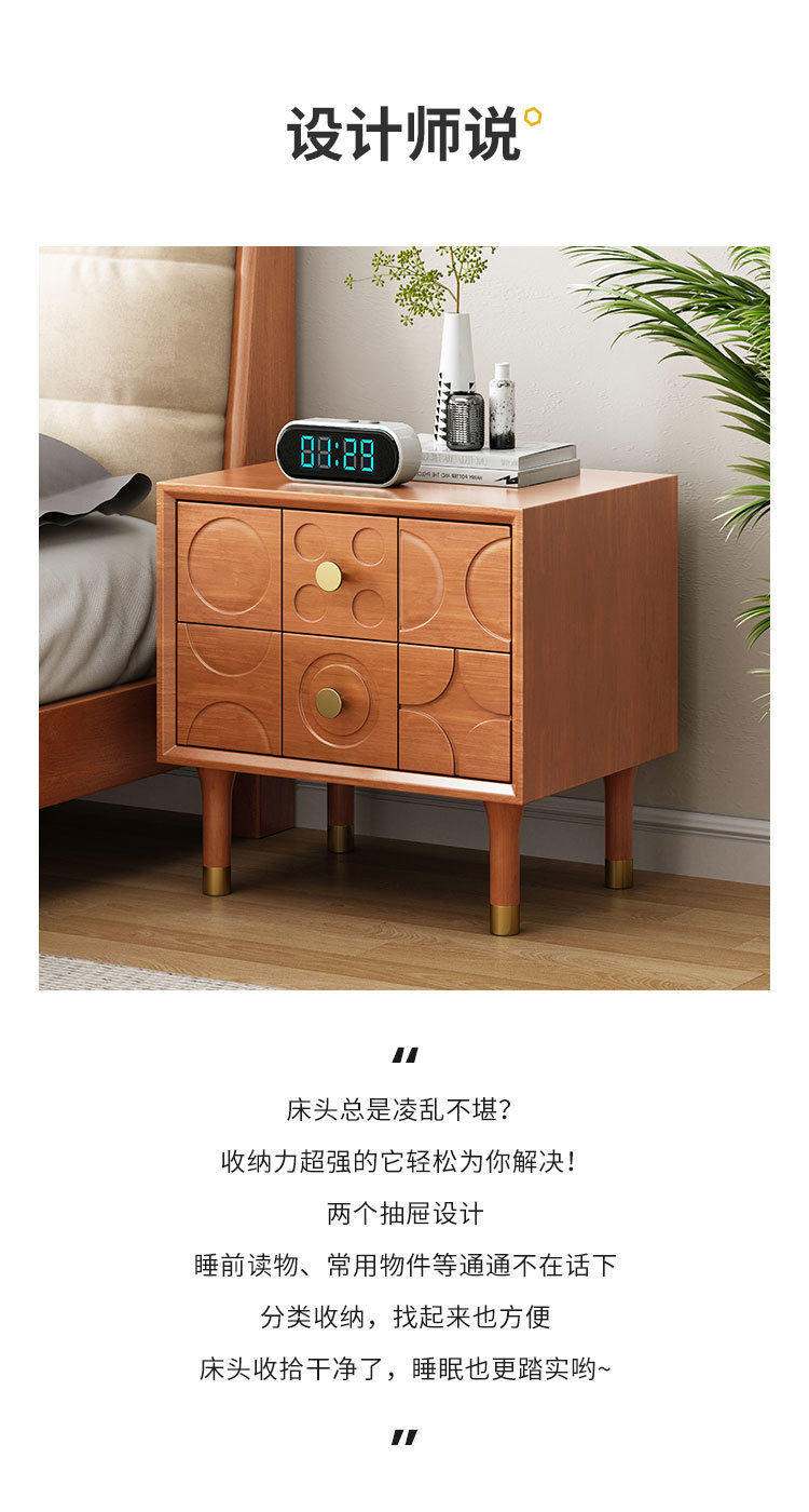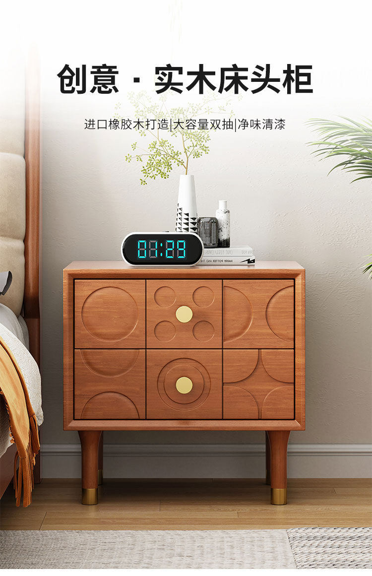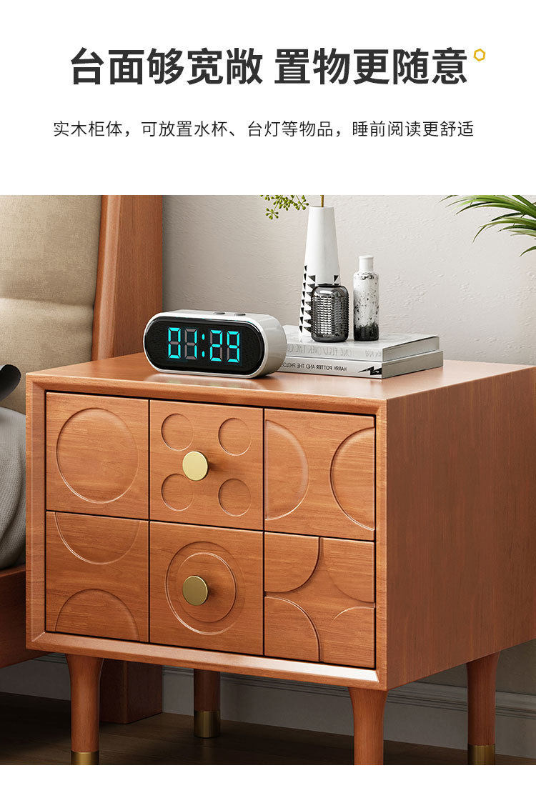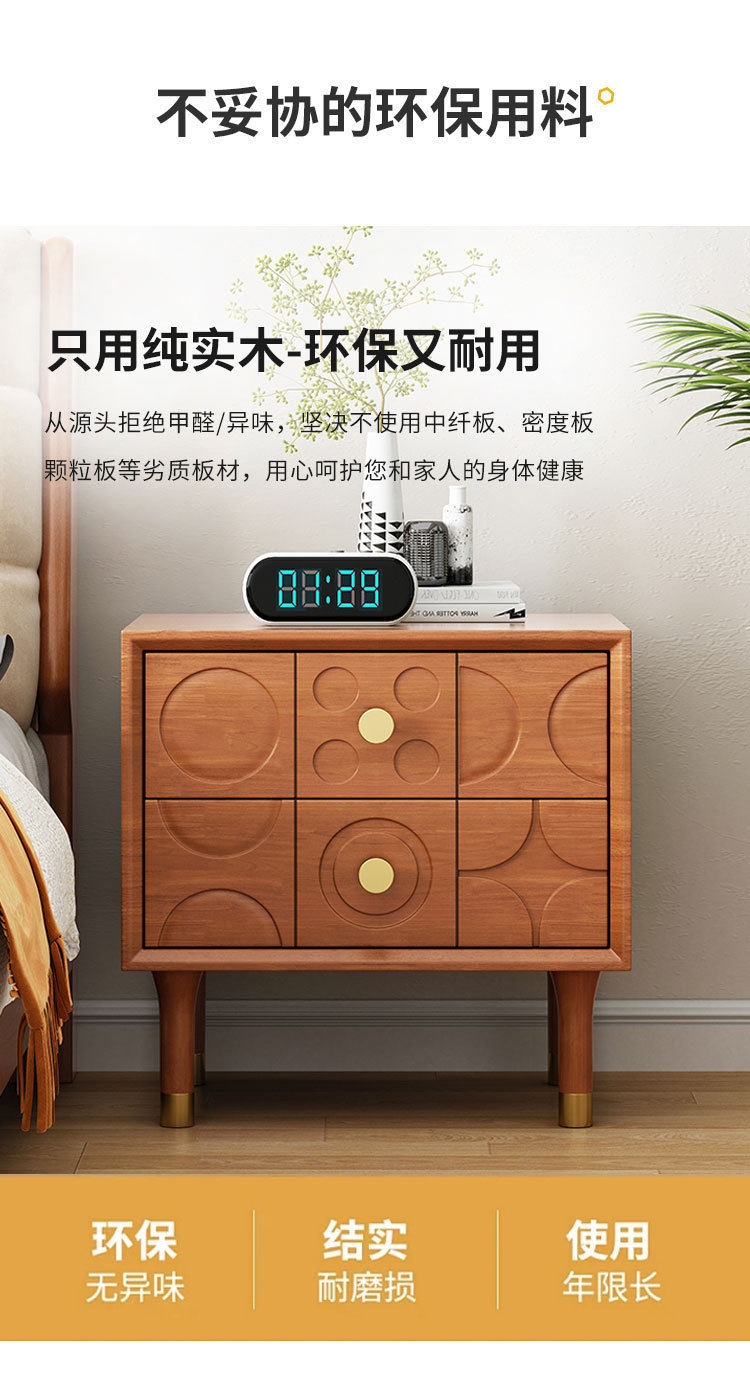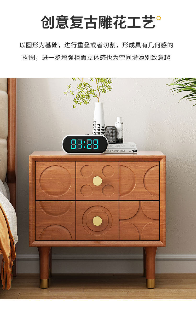 Medieval Style Solid Wood Bedside Table Retro Style Simple Nordic Art Creative Carved Log Style Bedroom Bedside Table