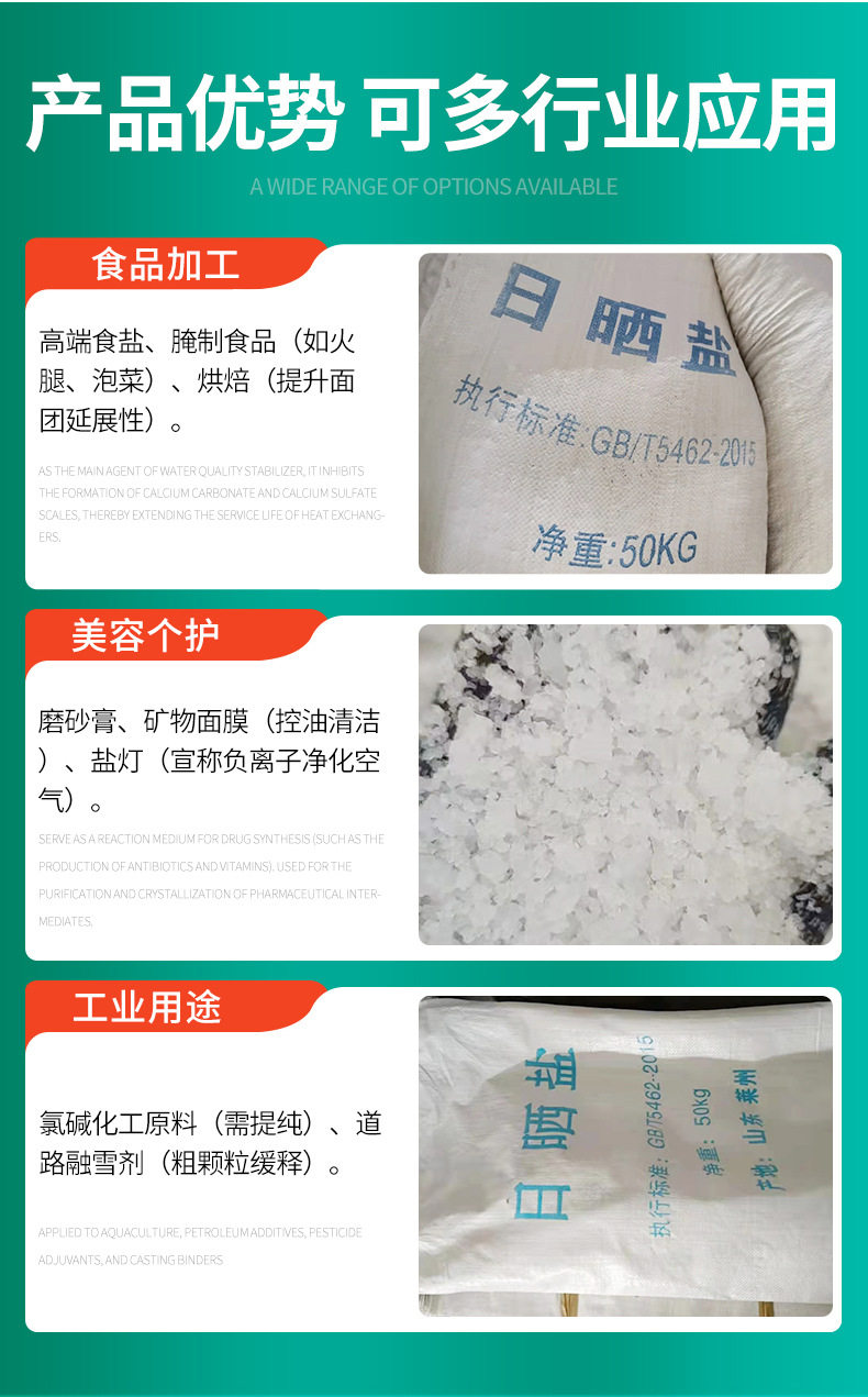 Solar Salt Industrial Salt Sea Salt Large, Medium and Small Granular Salt Snow Melting Boiler Water Treatment Hot Compress Industrial Grade Solar Salt