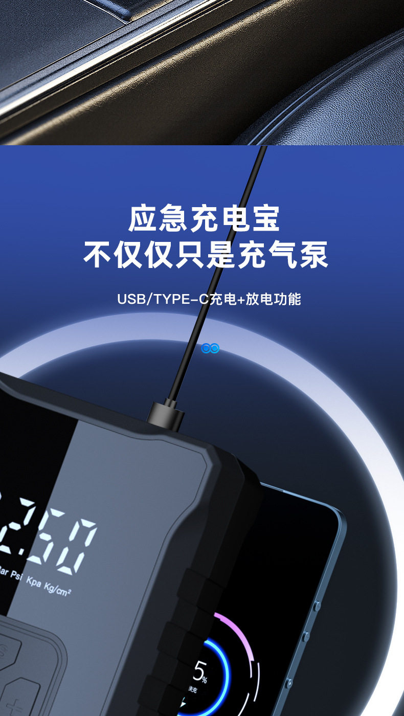 | Specification | Wired digital display model (cigarette lighter draws power),Wireless digital display dual-use type-c charging + power bank,Wireless digital display upgraded type-c charging + power bank + cigarette lighter for power extraction |