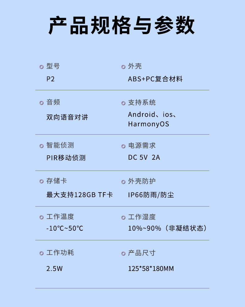 | Specification | P2tuya wifi model +9000mah built-in battery,P2 tuya wifi model + 9000mah battery + 32g memory card,P2 tuya wifi model + 9000mah battery + 64g memory card,32g memory card |