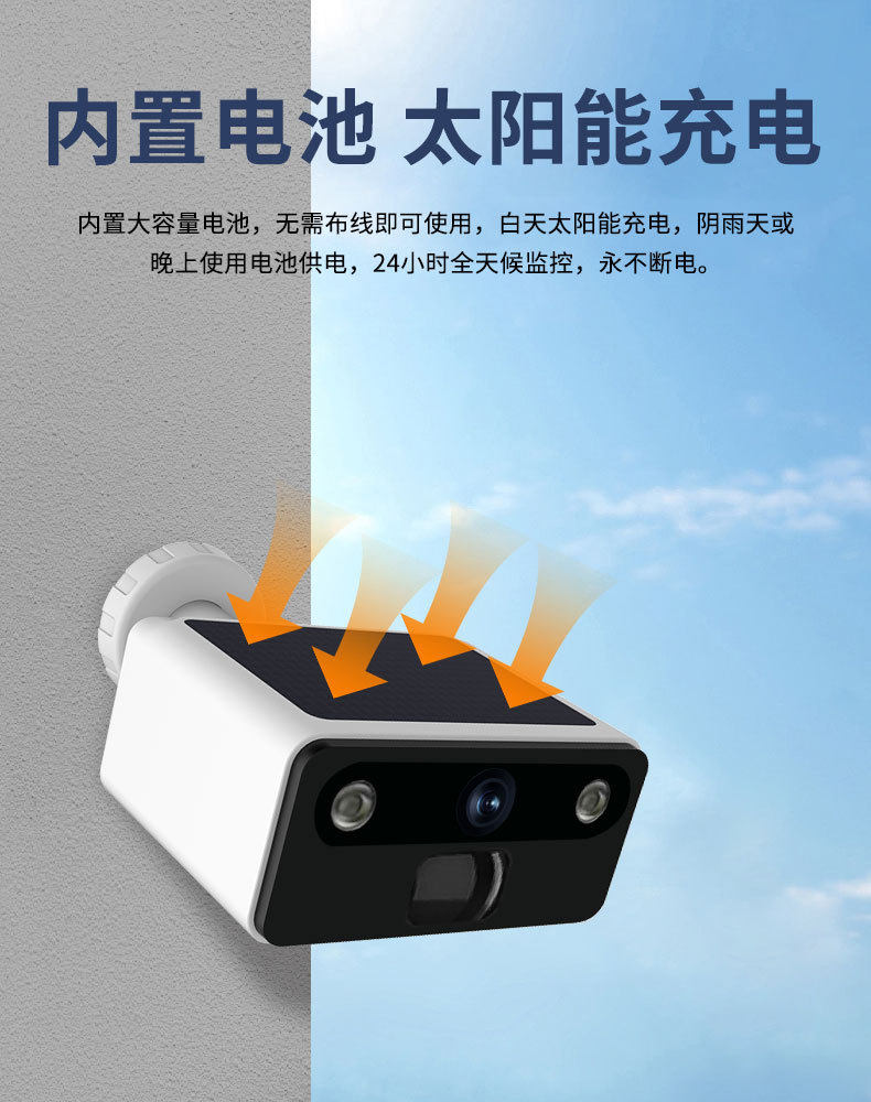 Popular Foreign Trade Solar Monitor Monitoring Home Camera Outdoor Rainproof Smart High-Definition Night Vision Monitoring