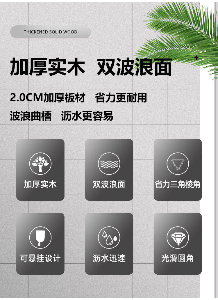 Solid Wood Washboard, Thickened Washboard, Whole Wood Washboard, Household Kneeling Washboard, Hand-Held Washboard