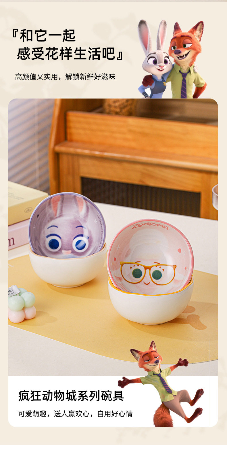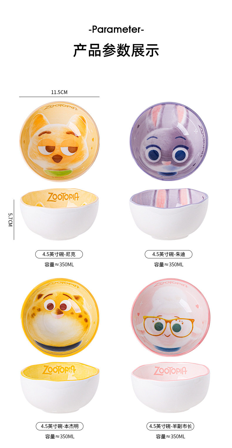 Zootopia Creative Ceramic Rice Bowl Underglaze Color Tableware Set Gift Box Practical Opening Gift Housewarming Souvenir