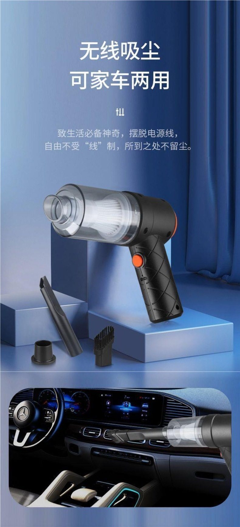 Car Wireless Vacuum Cleaner, High-Power Suction and Blowing Dual-Purpose Multi-Functional Dust Suction Artifact, Household Compact and Large Suction Dust Removal