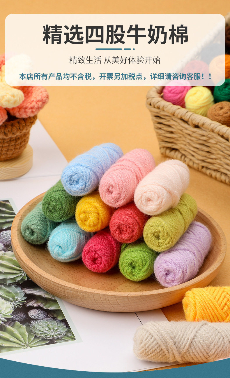 In-Stock 4-Ply Milk Cotton Combed Yarn Baby Crochet Thread Medium Thickness Handmade Knitting Yarn Crochet Doll Yarn DIY
