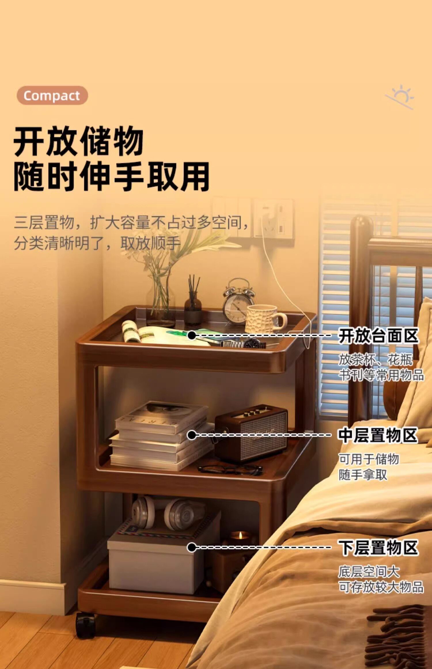 Bedside Table Bedroom Small Alternative Mobile Bedside Storage Rack Simple Multi-Functional Bedside Creative Small Table