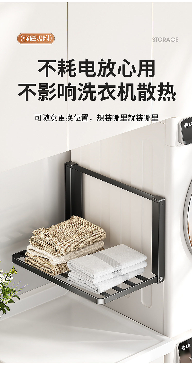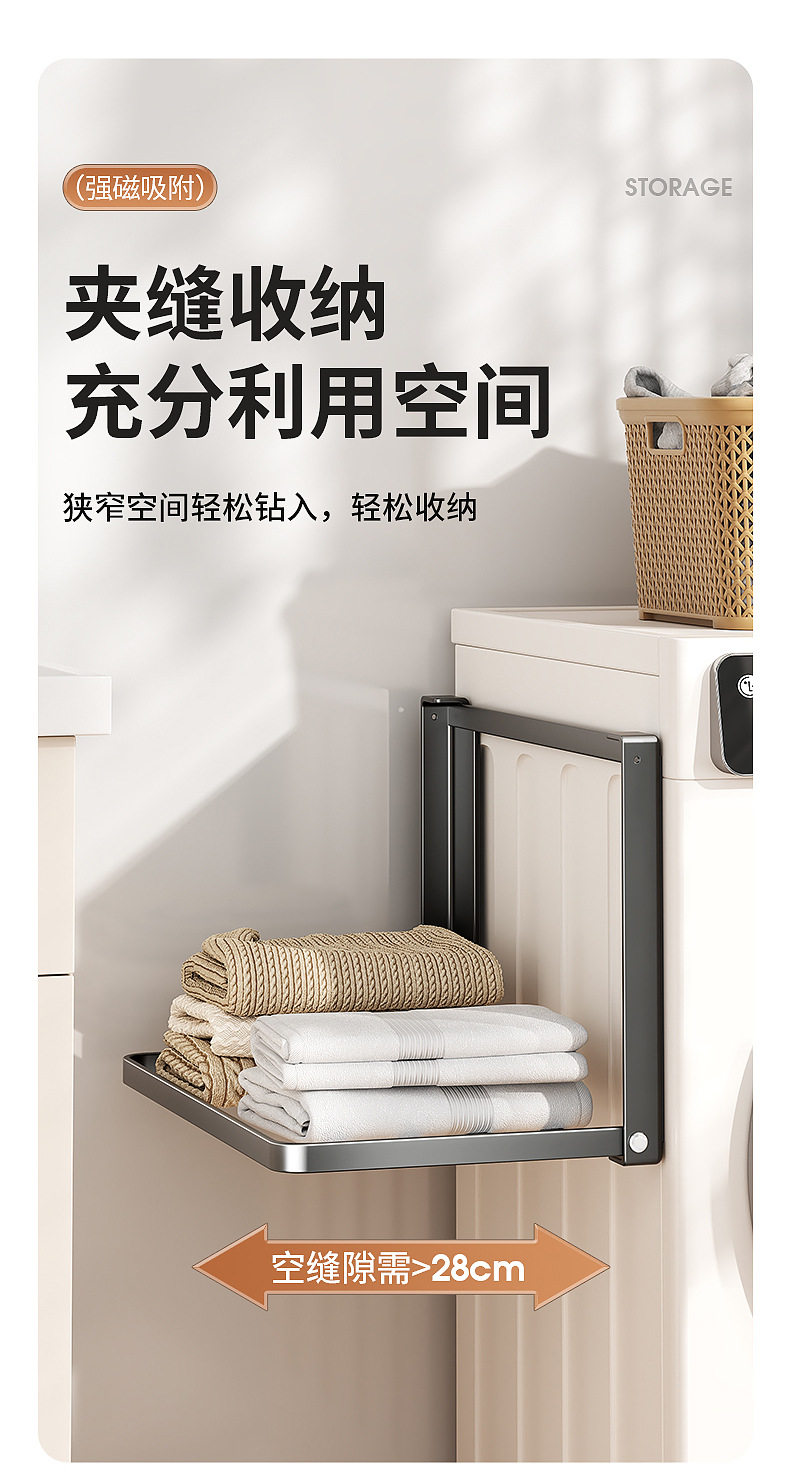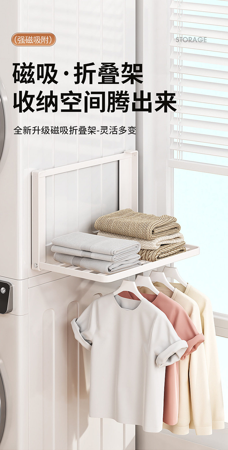 Carefully Selected Magnetic Folding Rack Washing Machine Side Towel Storage Rack Shelf Balcony Multi-Purpose Wall-Mounted Storage Rack