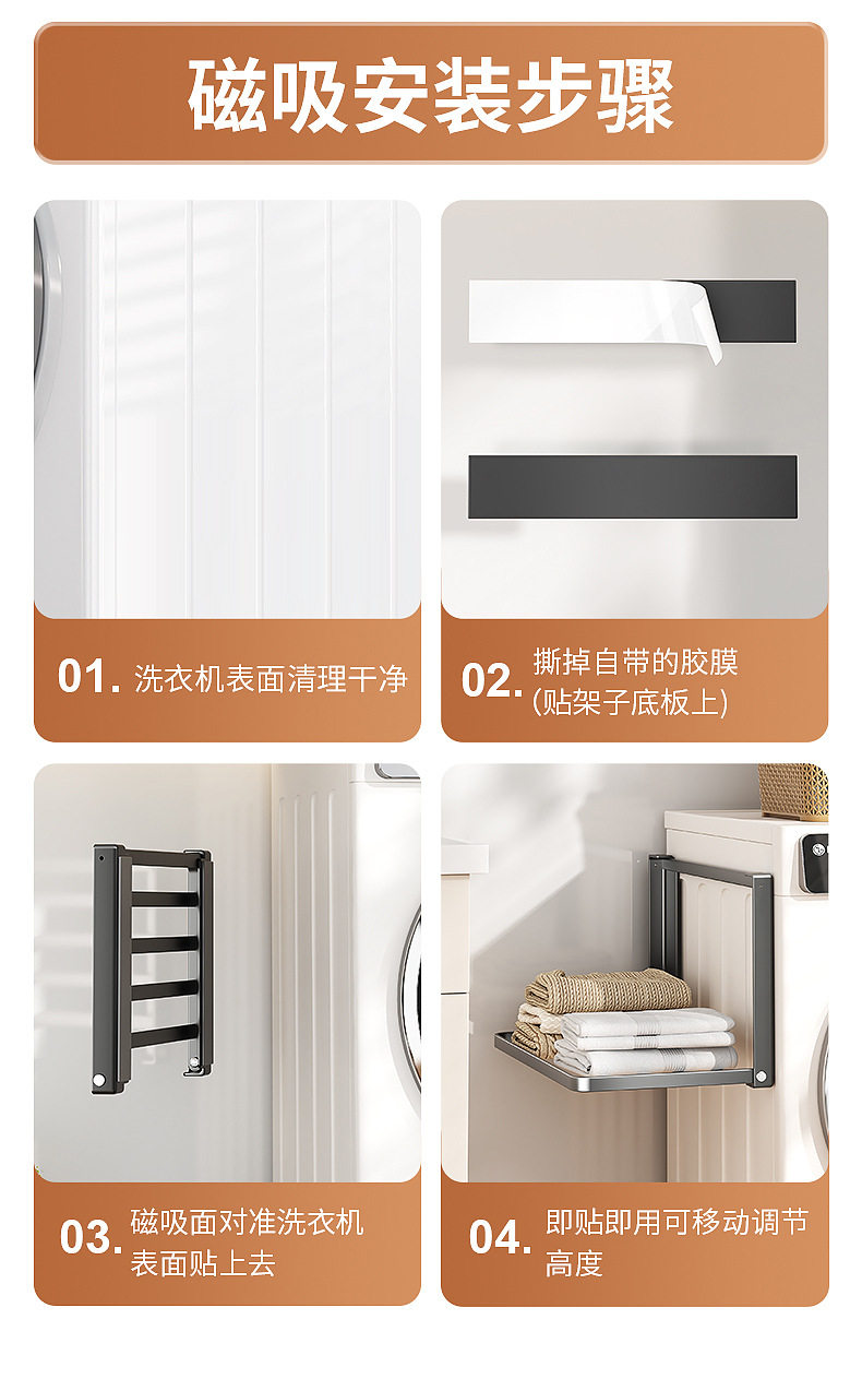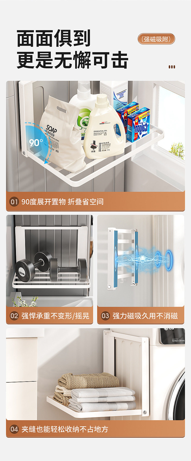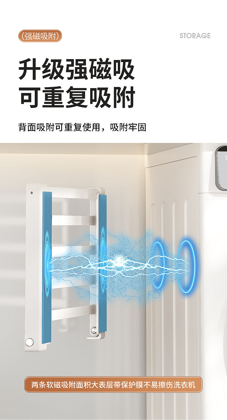 Carefully Selected Magnetic Folding Rack Washing Machine Side Towel Storage Rack Shelf Balcony Multi-Purpose Wall-Mounted Storage Rack