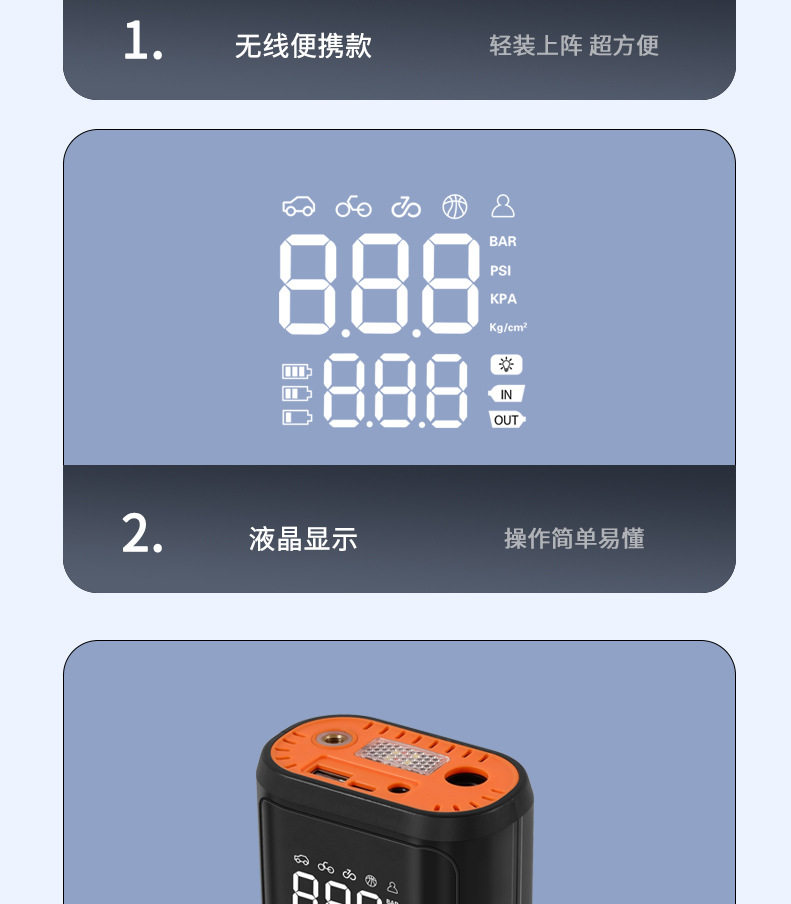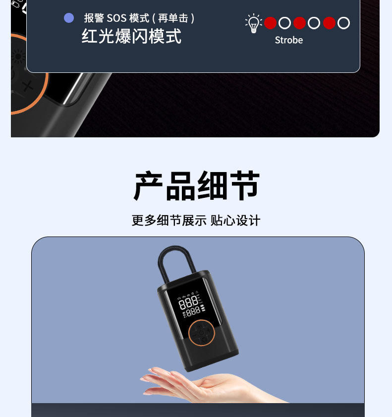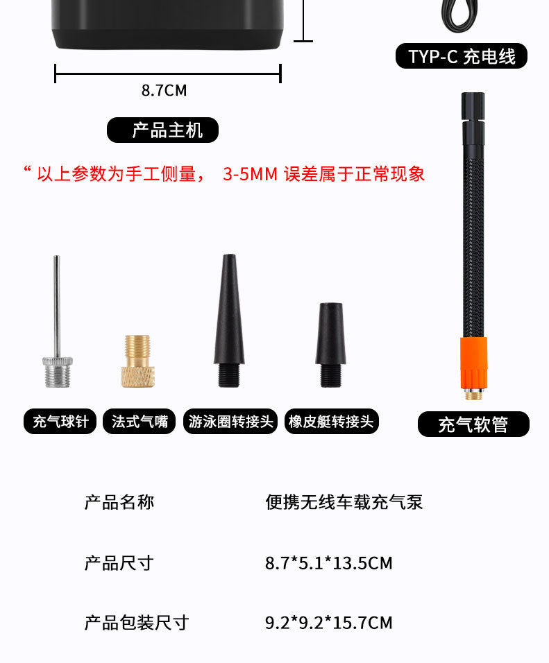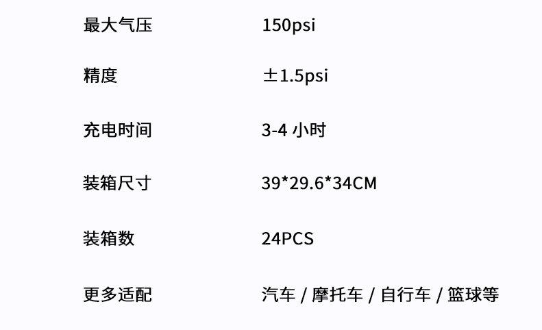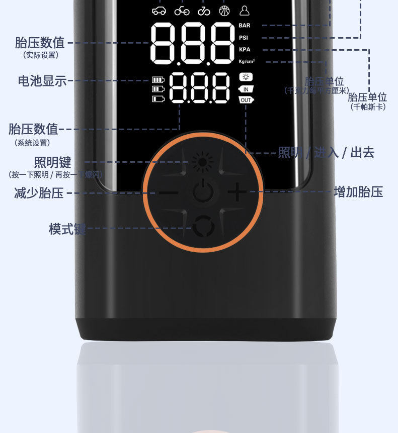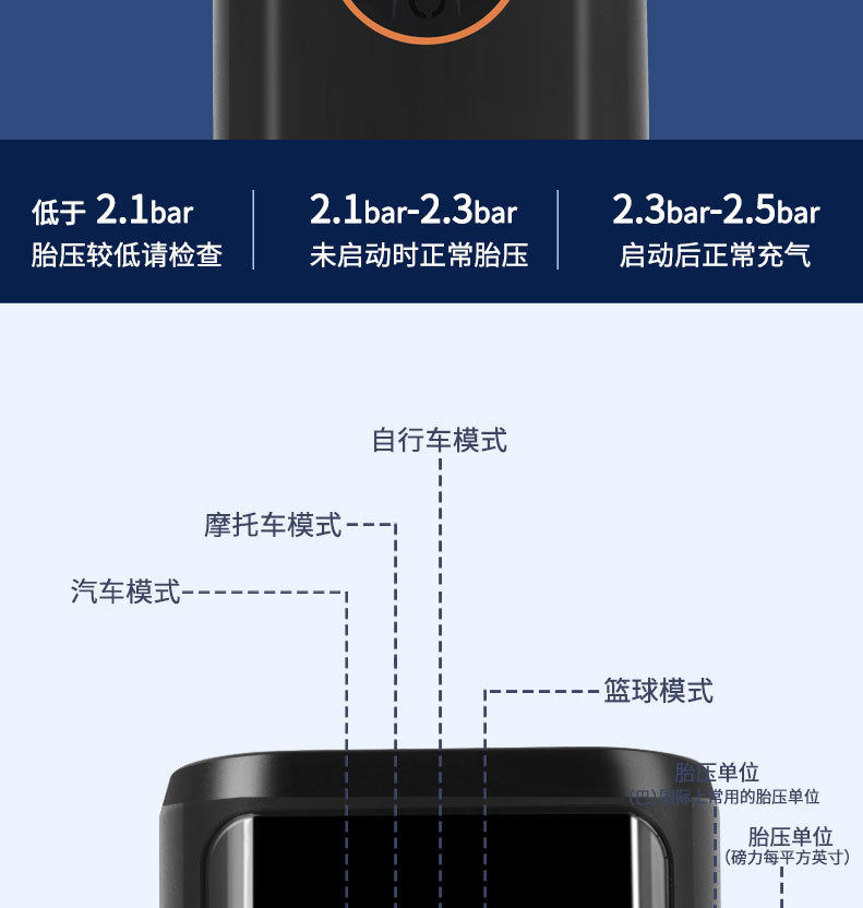 | Additional features | Lighting,Tire pressure gauge,Warning light,Usb charging |