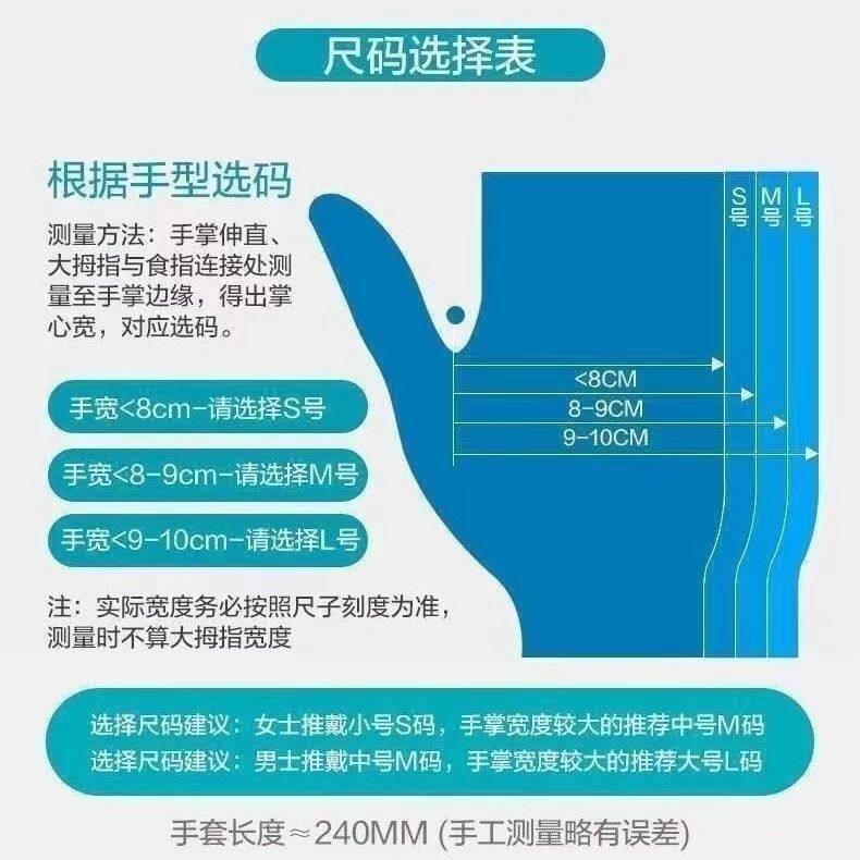 | Specifications and models | Powder-free white thickened boxed disposable gloves *small size s - ladies with small hands,Powder-free white thickened boxed disposable gloves*medium size m-general ladies,Powder-free white thickened boxed disposable gloves*l size - general men,Powder-free white thickened boxed disposable gloves*extra large xl-men with big hands,Powder-free black thickened boxed disposable gloves *small size s - ladies with small hands,Powder-free black thickened boxed disposable gloves*medium size m-general ladies,Powder-free black thickened boxed disposable gloves*l size - general men,Powder-free black thickened boxed disposable gloves*extra large xl-men with big hands,Powder-free blue thickened boxed disposable gloves *small size s - ladies with small hands,Powder-free blue thickened boxed disposable gloves*medium size m-general ladies,Powder-free blue thickened boxed disposable gloves*large l size-general men,Powder-free blue thickened boxed disposable gloves*extra large xl-men with big hands,Powder-free blue thickened boxed disposable gloves *small size xs - children's hands |
