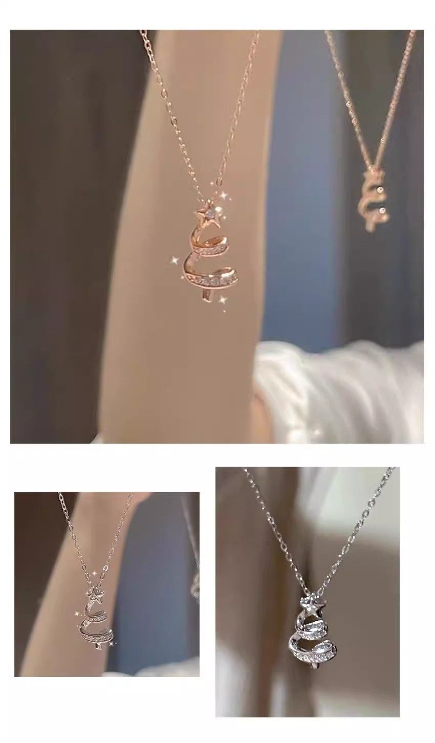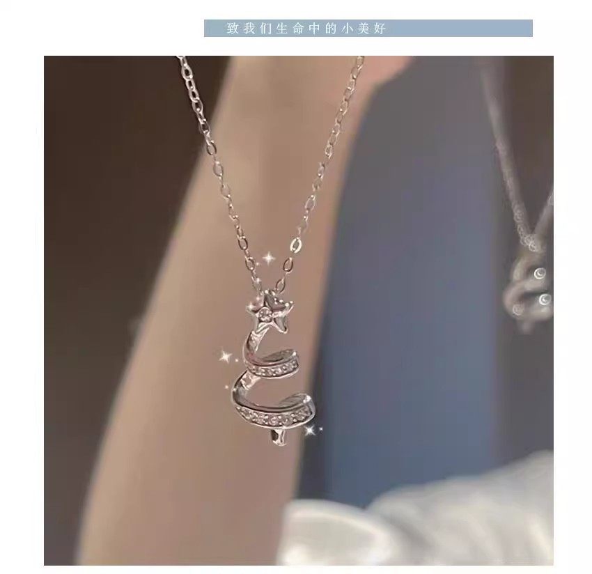Titanium Steel Non-Fading Lucky Star Christmas Tree Necklace for Women Niche Exquisite Forest Style Small Fresh Ins Style Hot Selling Accessories