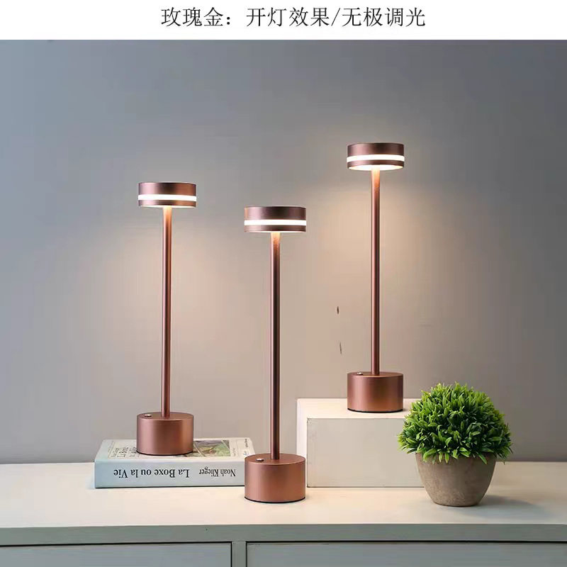 Metal Table Lamp Bedroom Bedside USB Rechargeable Ornament Eye Protection Night Light Atmosphere Light Bar Light Cross-Border Hot Sale