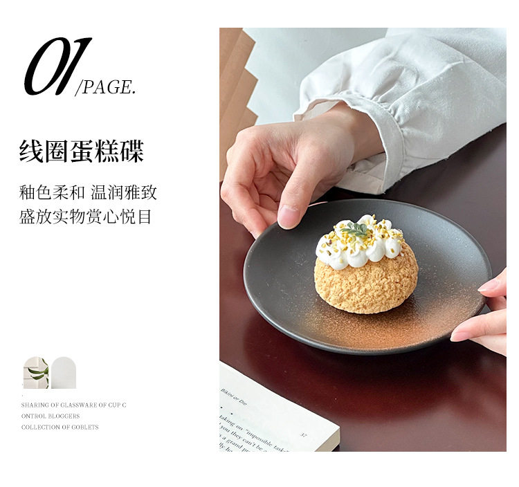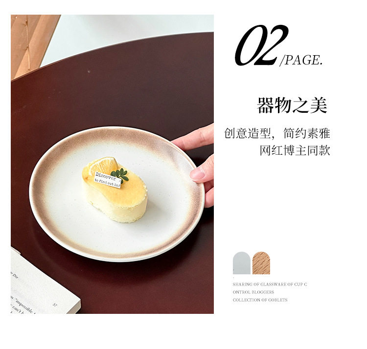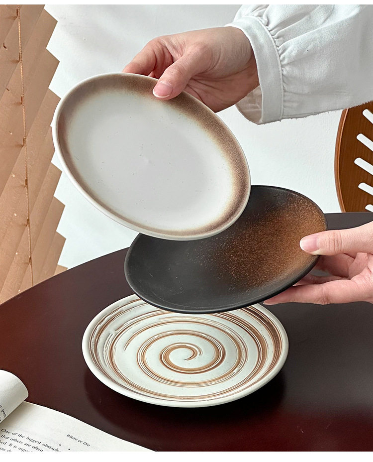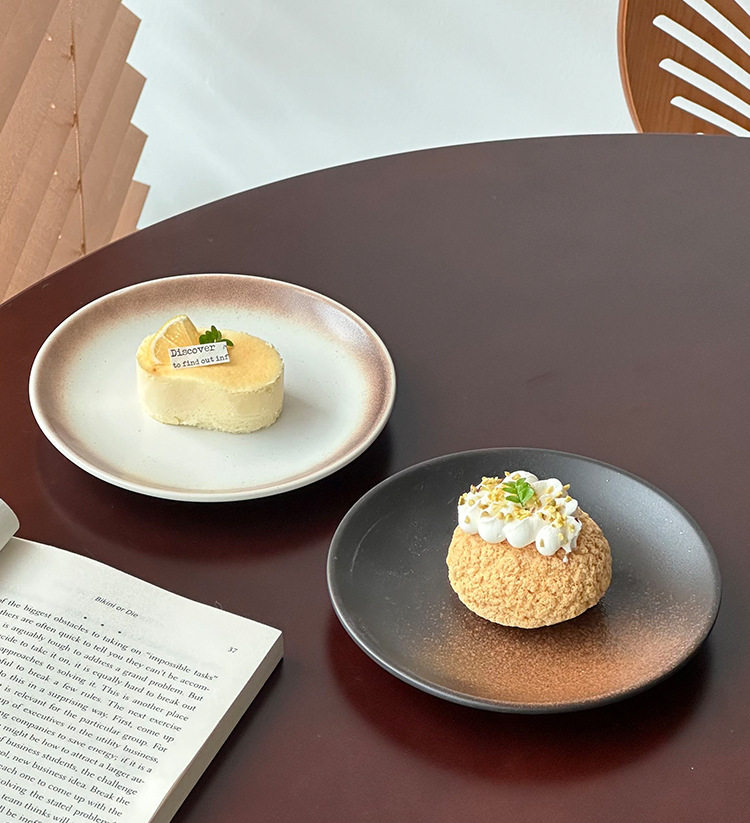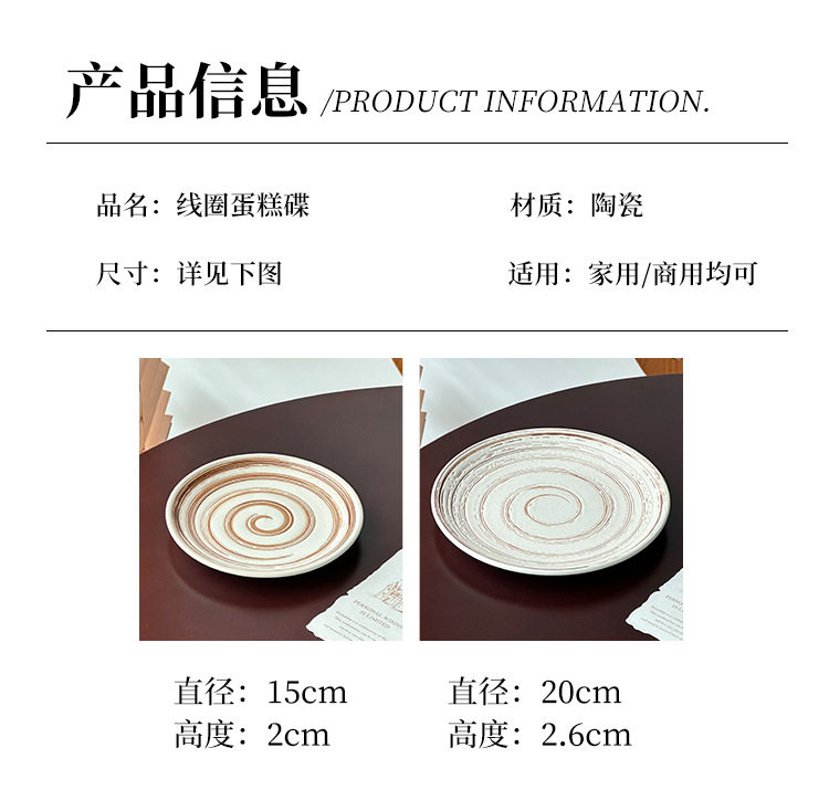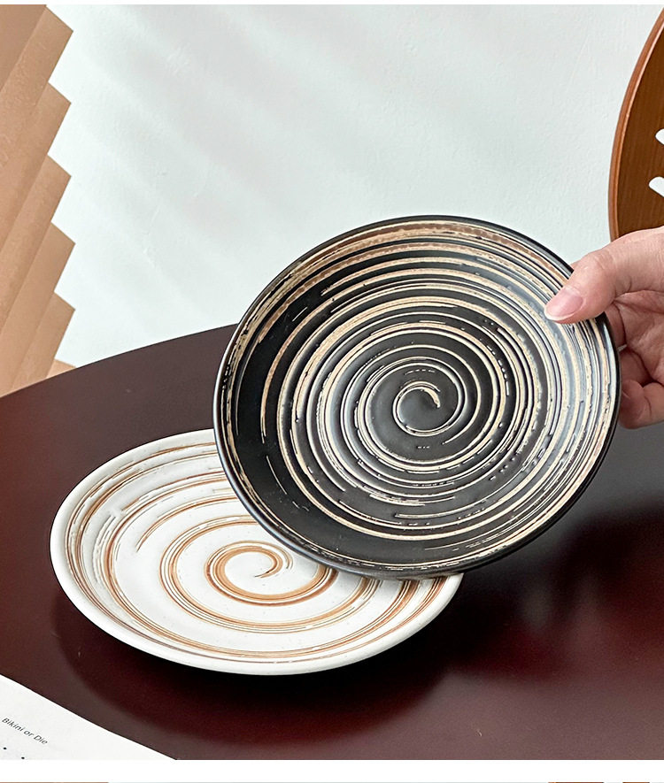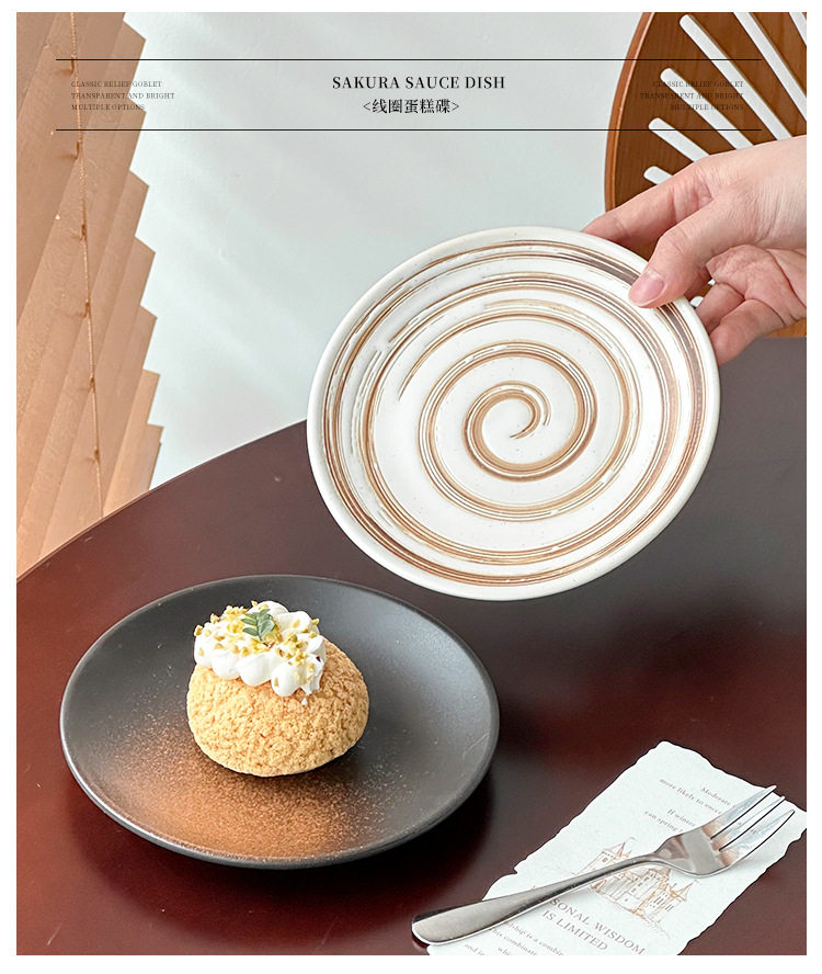 Japanese Retro Coil Ceramic Dessert Plate Steak Western Food Plate High-End Pasta Plate Cake Plate Round Plate Breakfast Plate