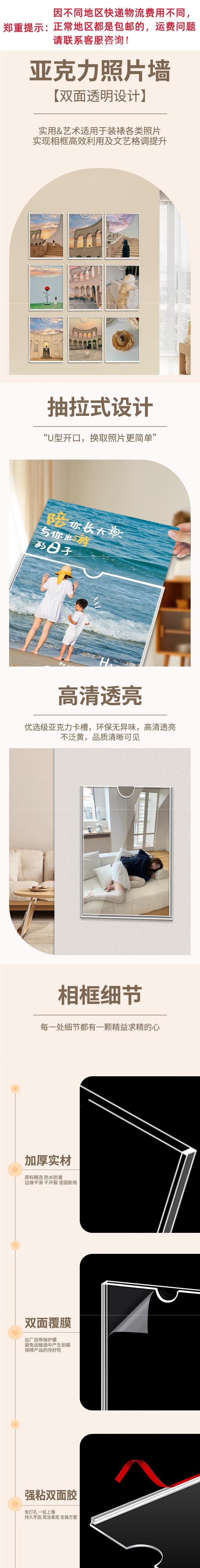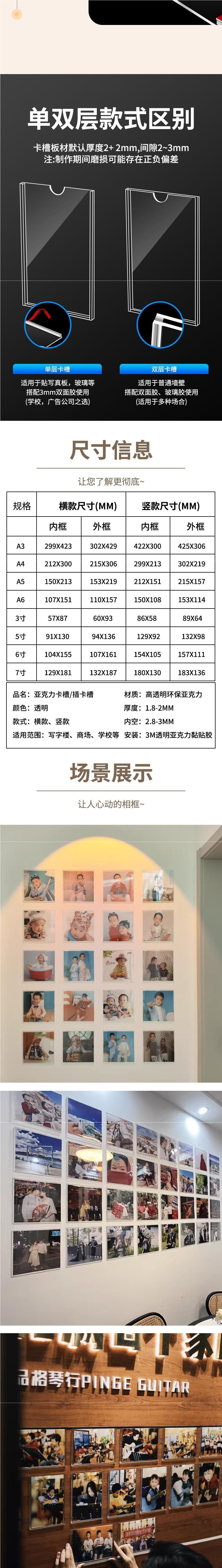 Acrylic Card Slot A3 Photo Display Frame Insert Paper Transparent Box A4 Photo Wall Combination Photo Frame Wall Hanging Without Punching