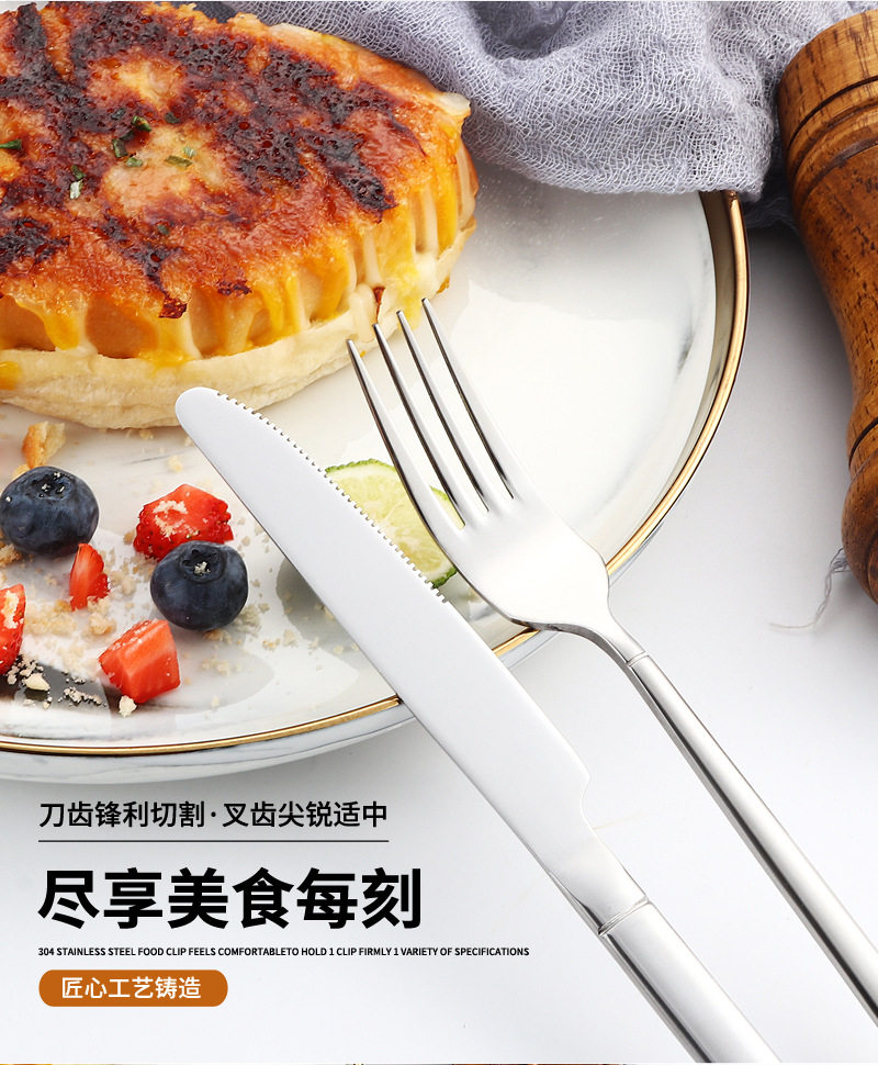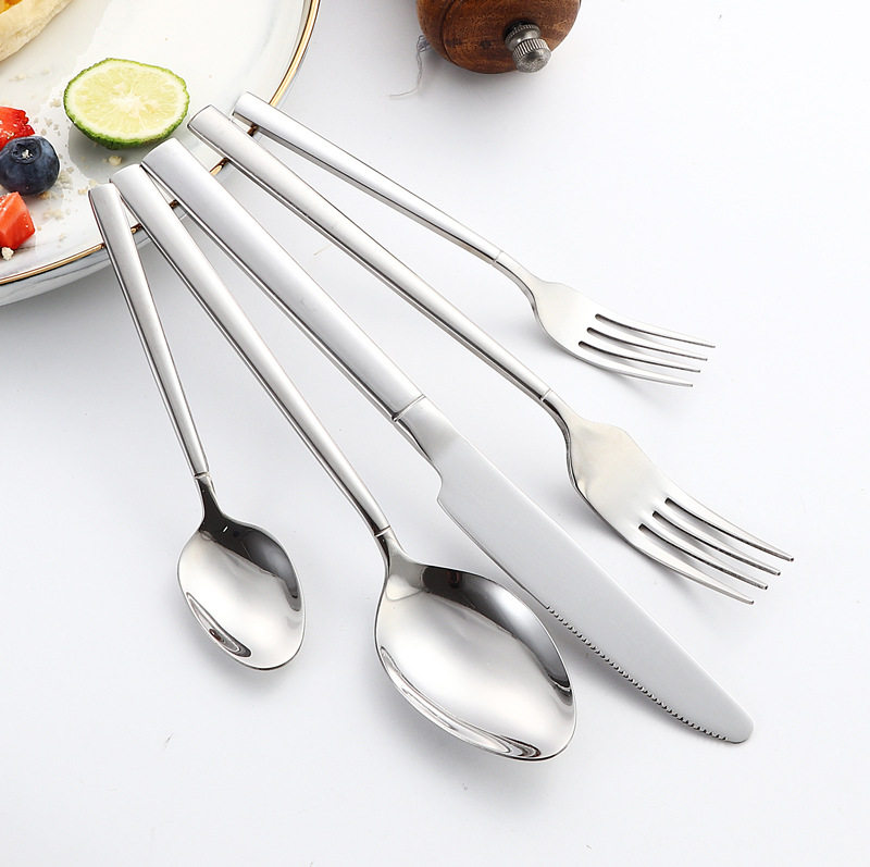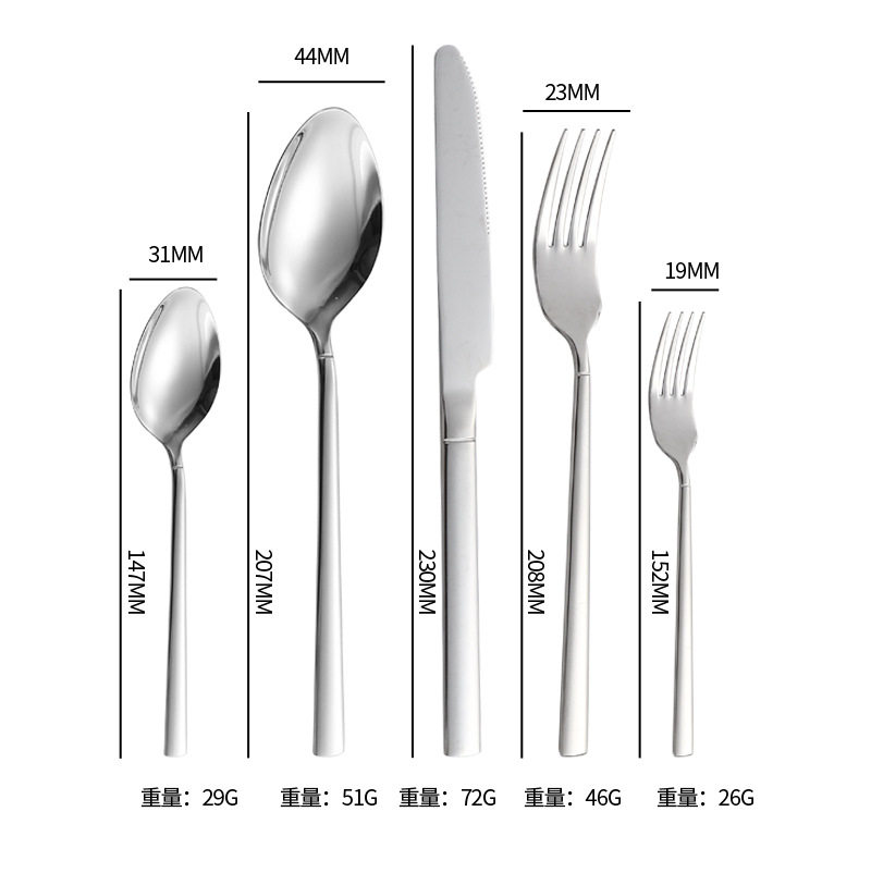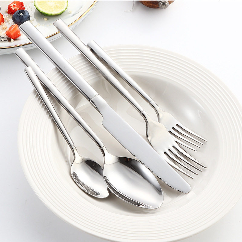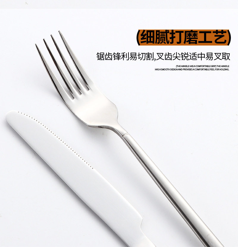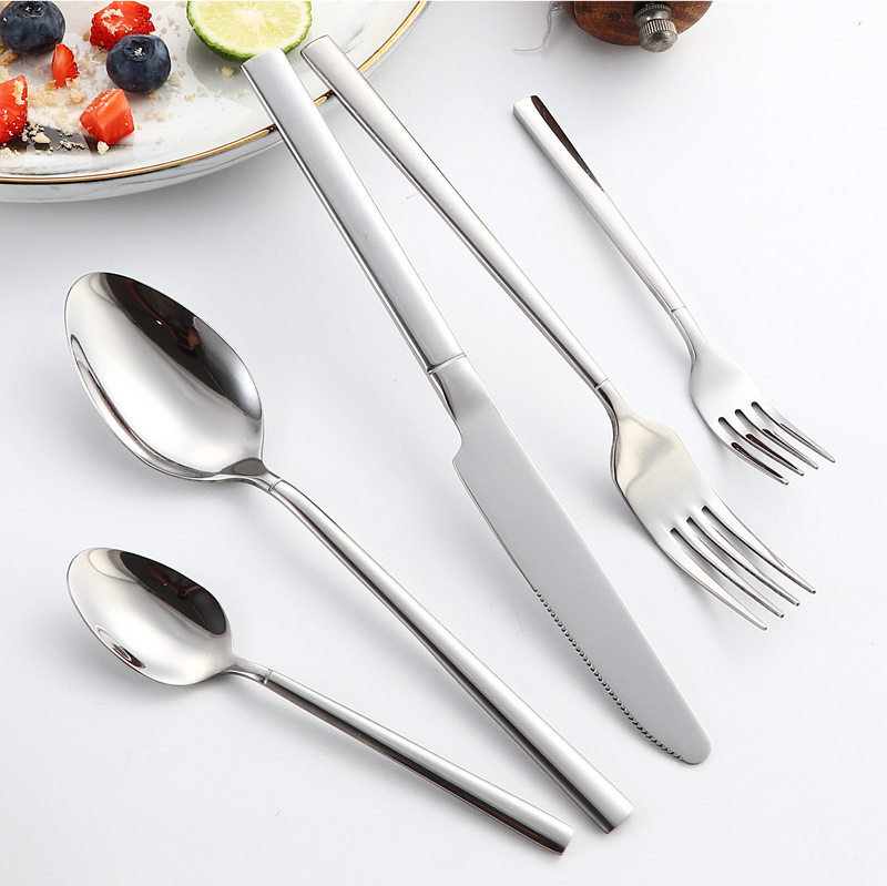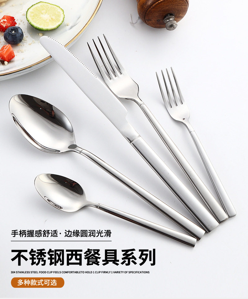 Square Handle Stainless Steel Tableware Knife, Fork and Spoon Hotel Restaurant Fork Spoon Western Tableware Set 304 Stainless Steel Tableware