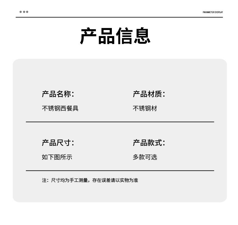 | Package list | Knife, fork, spoon, tea spoon, tea fork |