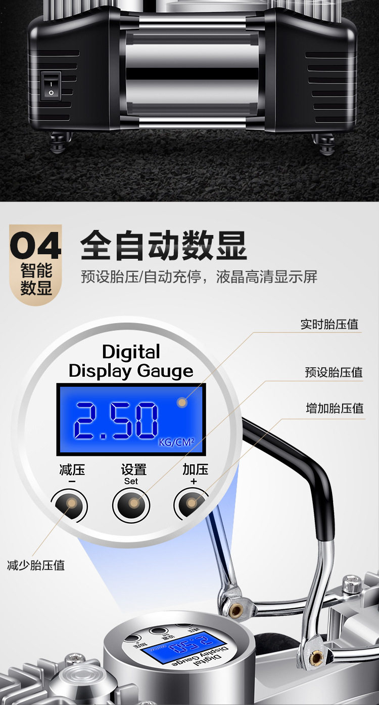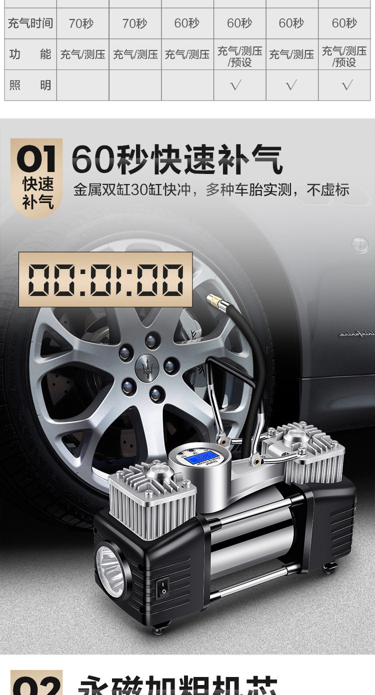 Vehicle-Mounted Air Pump Vehicle-Mounted Metal Double-Cylinder High-Pressure High-Power Portable Off-Road Vehicle Tire Electric Air Pump