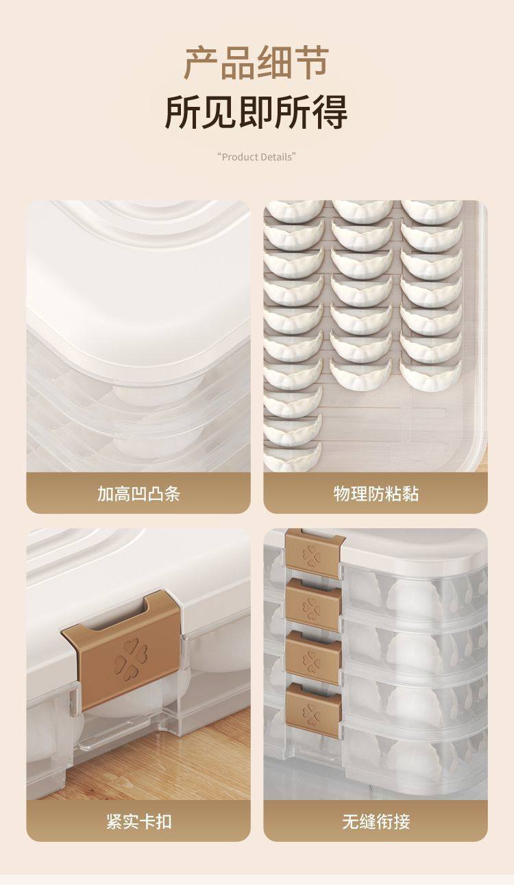 | Specification | One layer of milky brown color [with handle] can hold 60 dumplings,Two layers of milk coffee color [with handle] can hold 119 dumplings,Three-layer milk coffee color [with handle] can hold 179 dumplings,Four layers of milk coffee color [with handle] can hold 239 dumplings,Five-layer milk coffee color [with handle] can hold 299 dumplings |