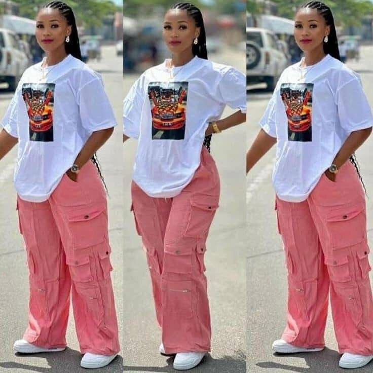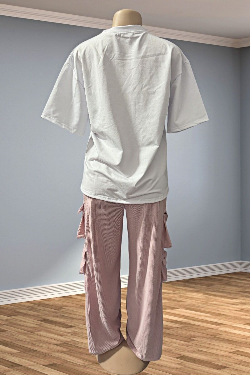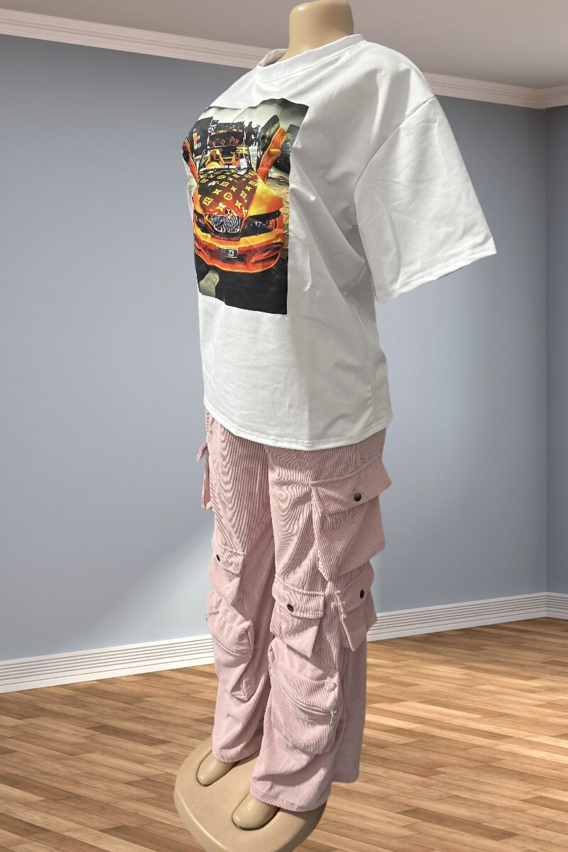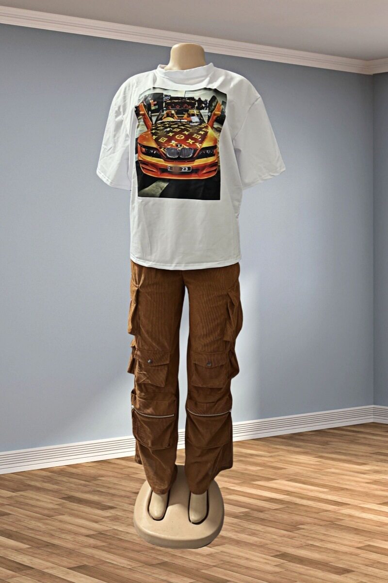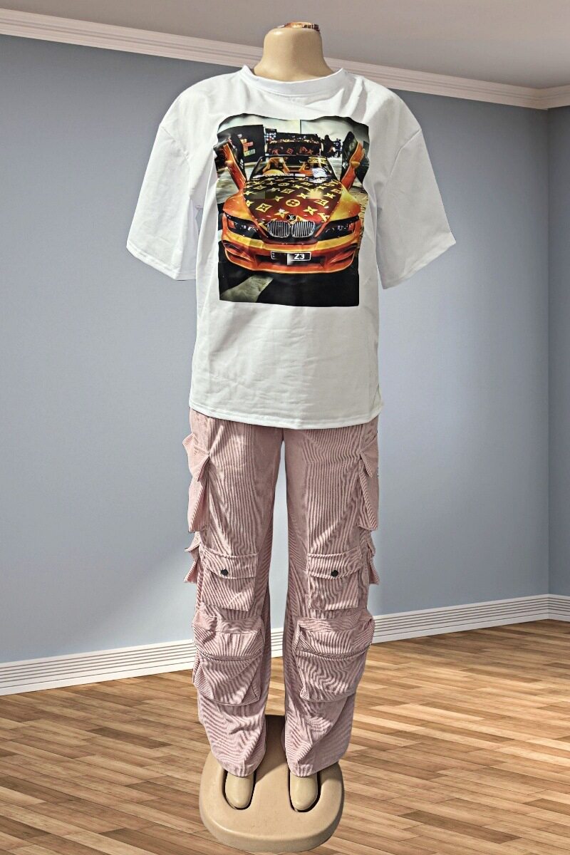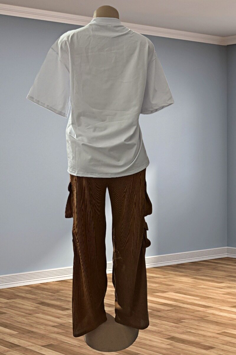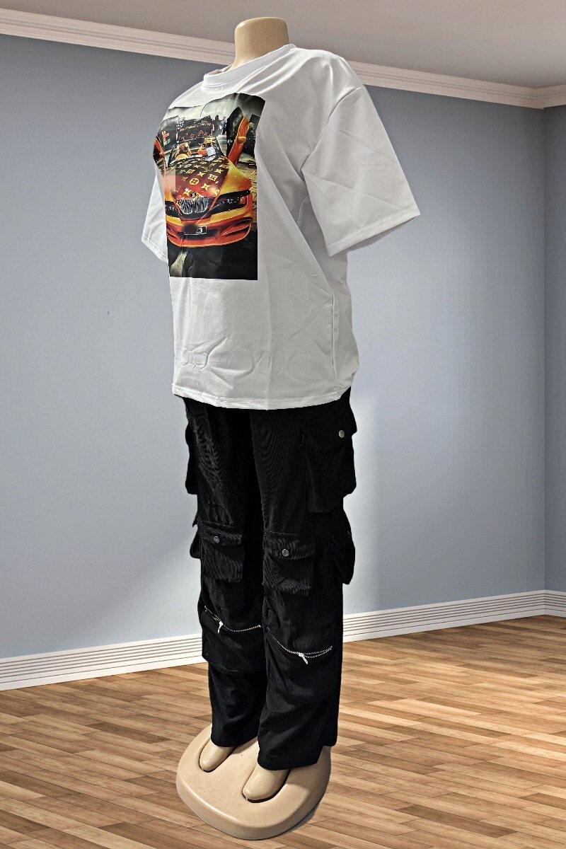 2025 Ready-Made New Hip-Hop Slimming Loose Casual Wide-Leg Cargo Pants and Heat-Printed Tops Two-Piece Set