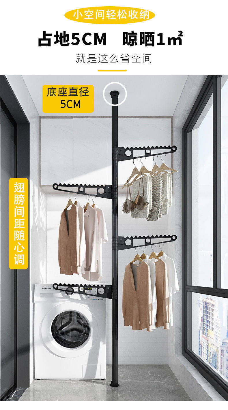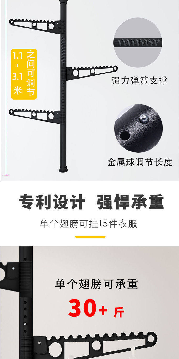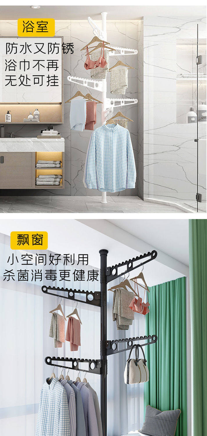 Floor-To-Ceiling Clothes Drying Rack, Thickened and Reinforced, Floor-Mounted, Adjustable Height, No-Drill, Retractable Household Clothes Rack