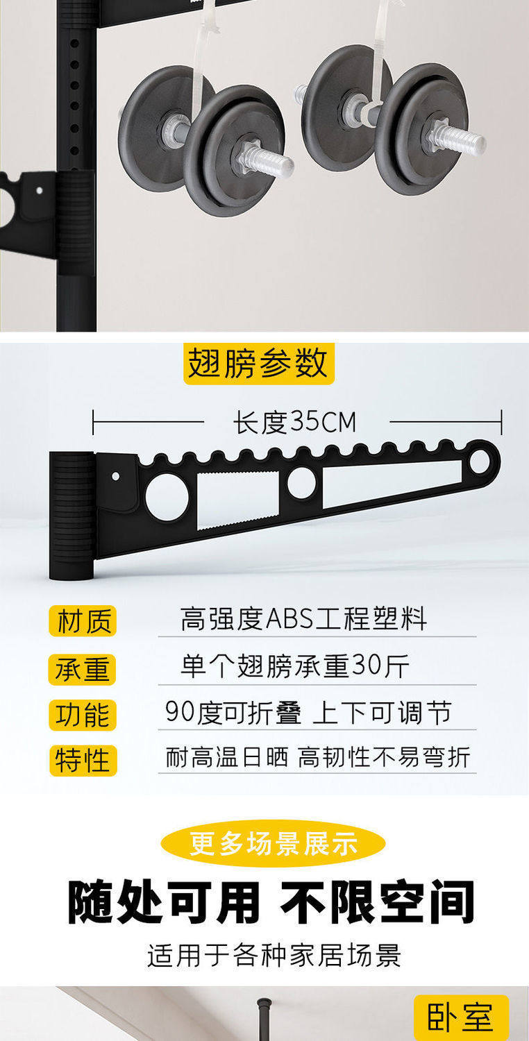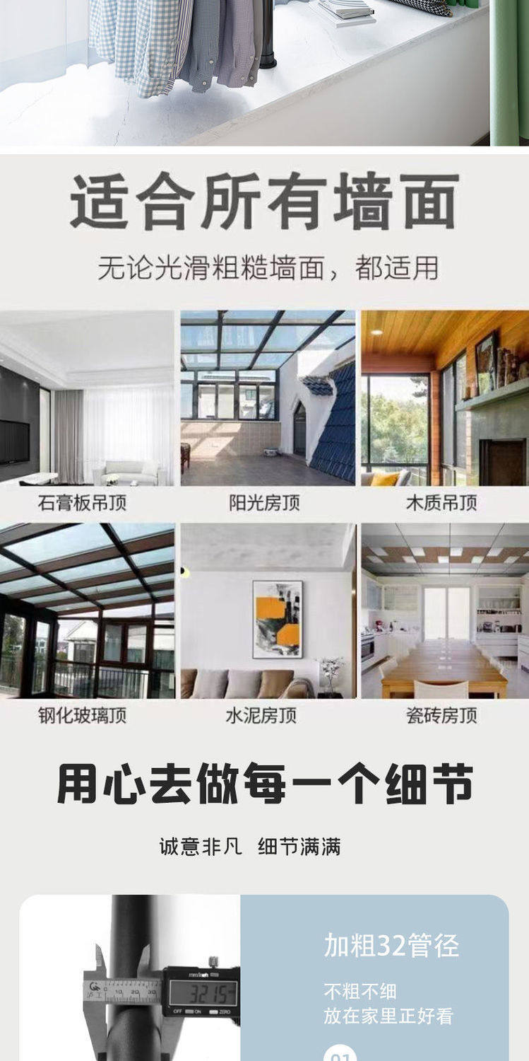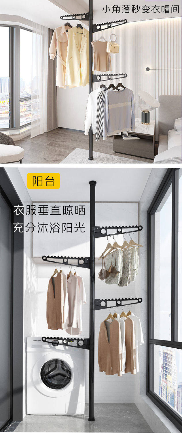 Floor-To-Ceiling Clothes Drying Rack, Thickened and Reinforced, Floor-Mounted, Adjustable Height, No-Drill, Retractable Household Clothes Rack