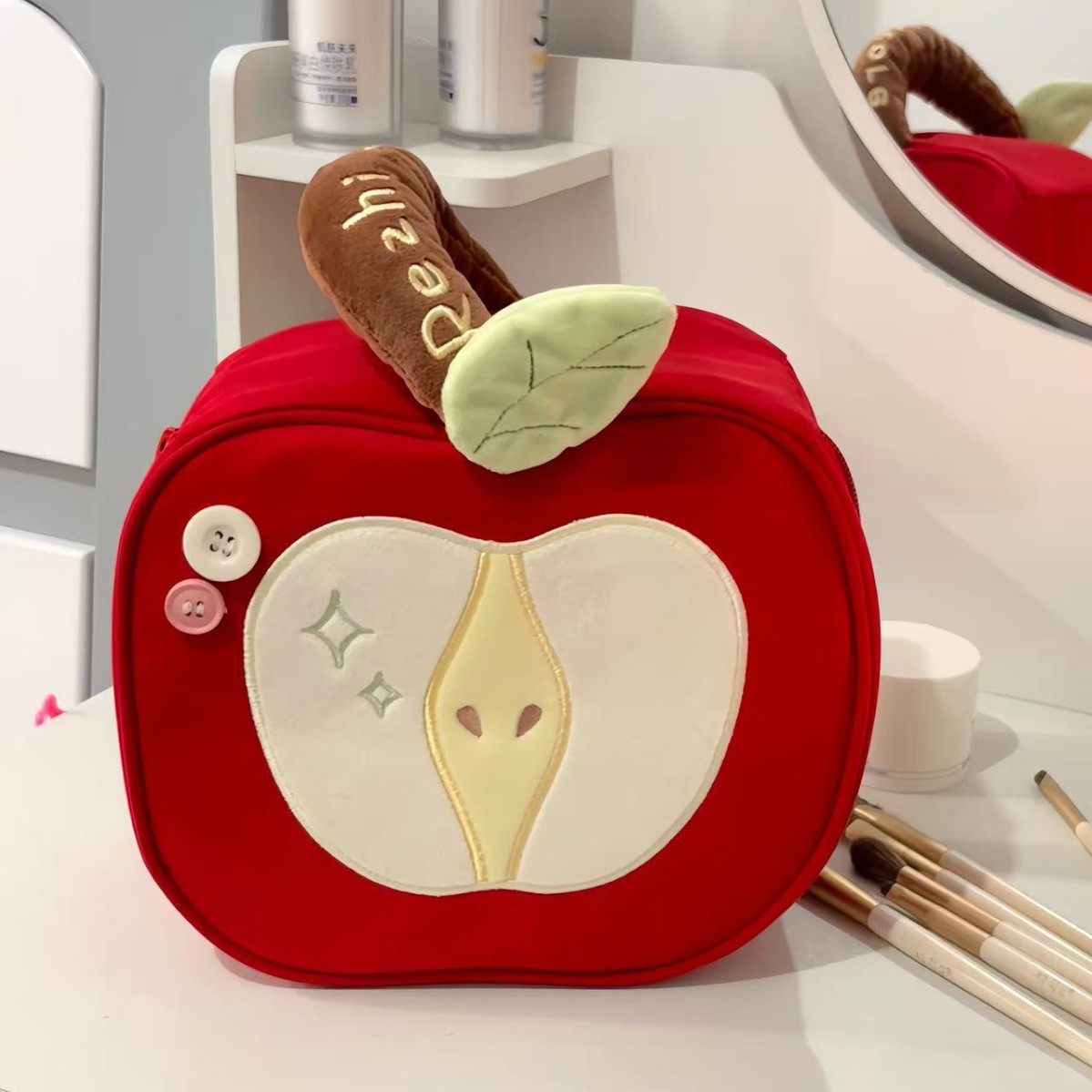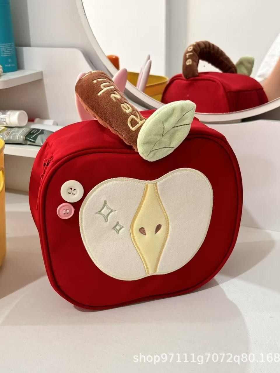 | Color | Red apple cosmetic bag [two removable dividers included] |