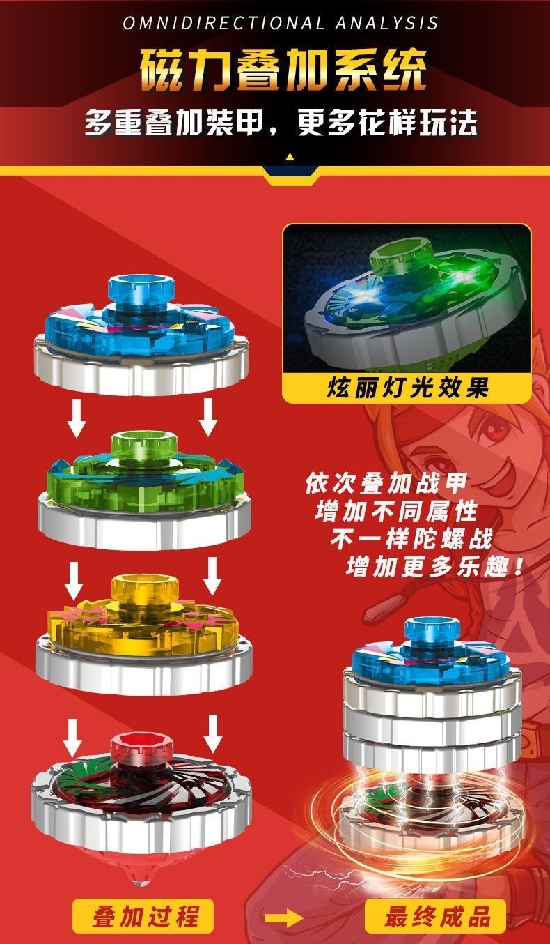 | Color | Single top (without transmitter),[alloy lighting] red model,[alloy lighting] blue model,[alloy lighting] black model,[alloy lighting] yellow model,[alloy lighting] green model,[alloy lighting] pink model,Red model [one transmitter and two tops],Blue model [one transmitter and two tops],Black model [one transmitter and two tops],Yellow model [one transmitter and two tops],Green model [one transmitter and two tops],Pink model [one transmitter and two tops],Red model [one transmitter and one top] comes with a battle disk,Blue model [one transmitter and one top] comes with a battle disk,Black model [one transmitter and one top] comes with a battle disk,Yellow model [one transmitter and one top] comes with a battle disk,Green model [one transmitter and one top] comes with a battle disk,Pink model [one transmitter and one top] comes with a battle disk,[2 handles 2 tops] red + blue (send battle disk),[2 handles 2 tops] red + black (comes with battle disk),[2 handles 2 tops] red + yellow (send battle disk),[2 handles 2 tops] red + green (send battle disk),[2 handles 2 tops] red + pink (comes with battle disk),[2 handles 2 tops] blue + black (comes with battle disk),[2 handles 2 tops] blue + yellow (send battle disk),[2 handles 2 tops] blue + green (send battle disk),[2 handles 2 tops] blue + pink (comes with battle disk),[2 handles 2 tops] black + yellow (comes with battle disk),[2 handles 2 tops] black + green (comes with battle disk),[2 handles 2 tops] black + pink (comes with battle disk),[2 handles 2 tops] yellow + green (send battle disk),[2 handles 2 tops] yellow + pink (free battle disk),[2 handles 2 tops] green + pink (comes with battle disk) |