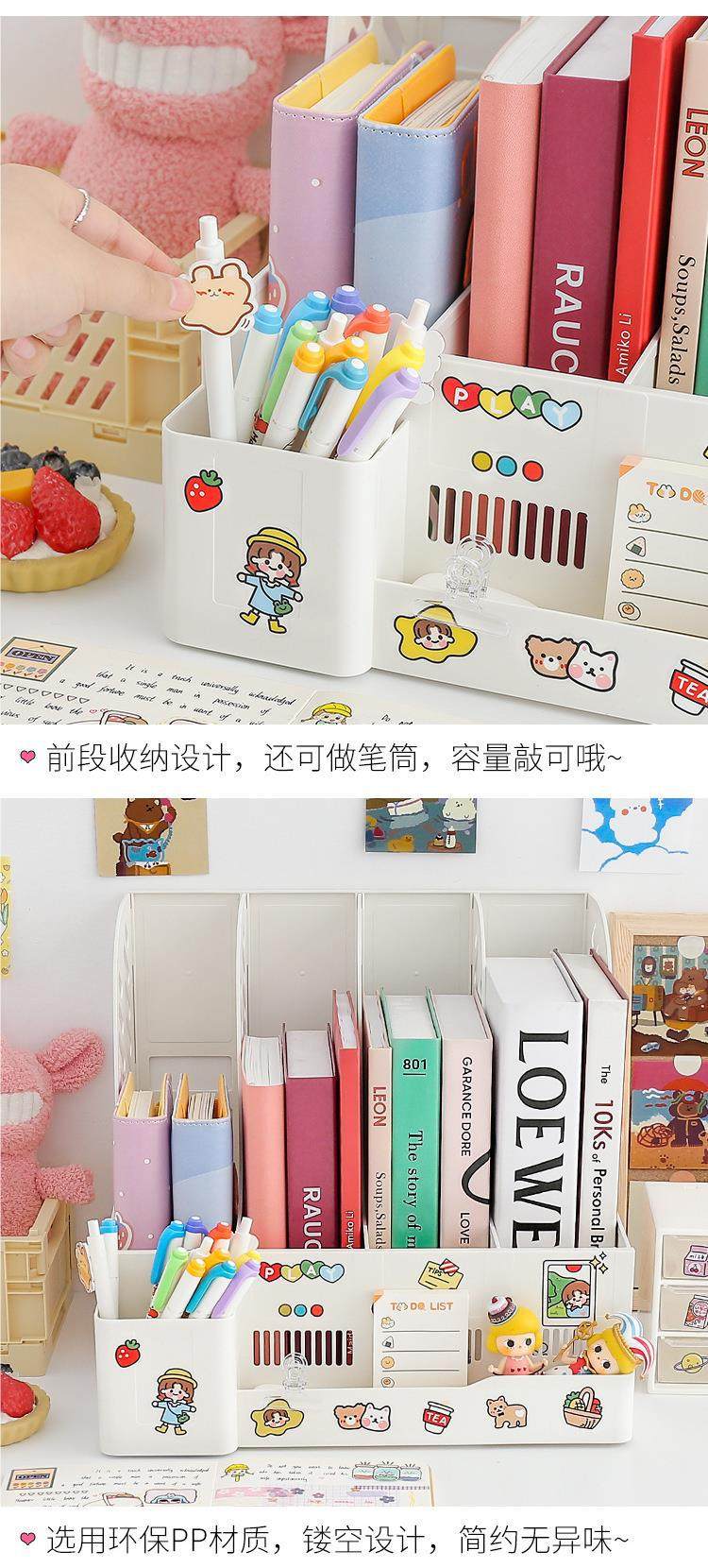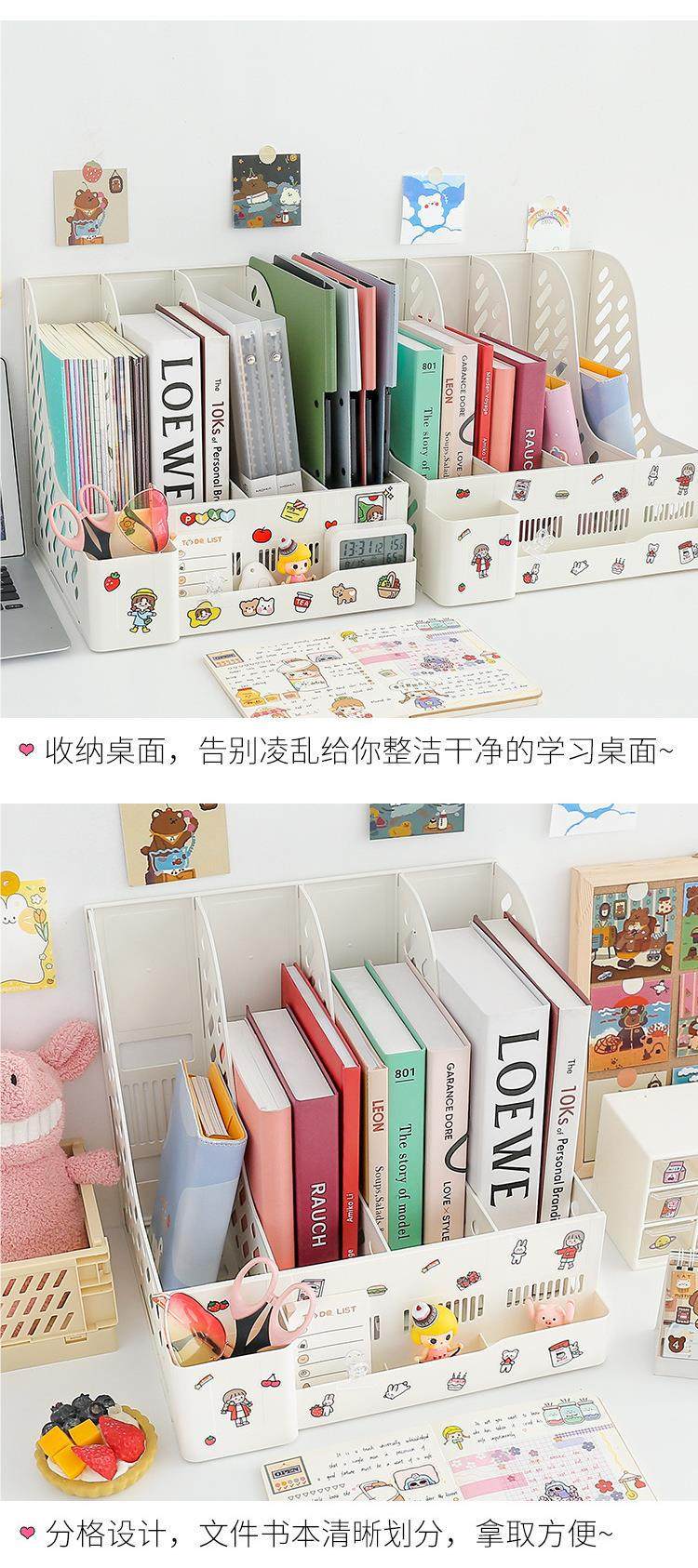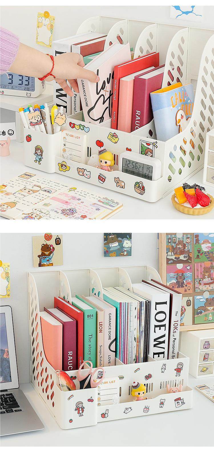 Creative Desktop Bookend Storage Bookshelf with Student Storage Rack Retractable File Vertical Book Display Rack