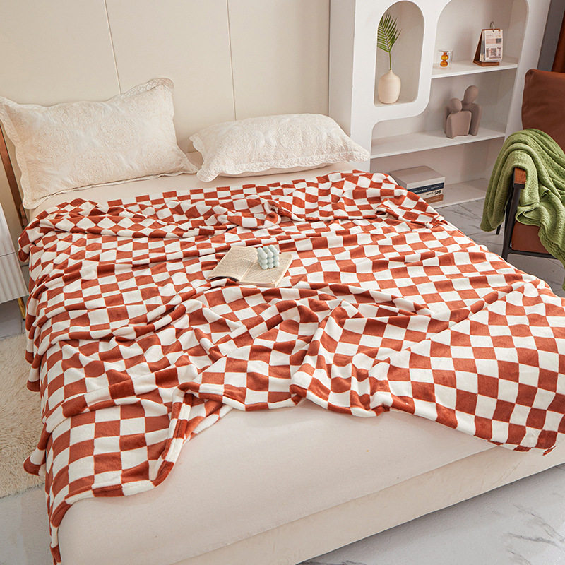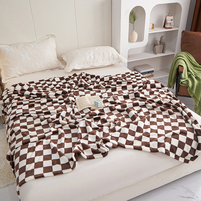 New Checkerboard Flannel Blanket Thickened Blanket Nap Blanket Foreign Trade Gift Blanket Wholesale