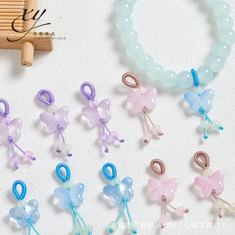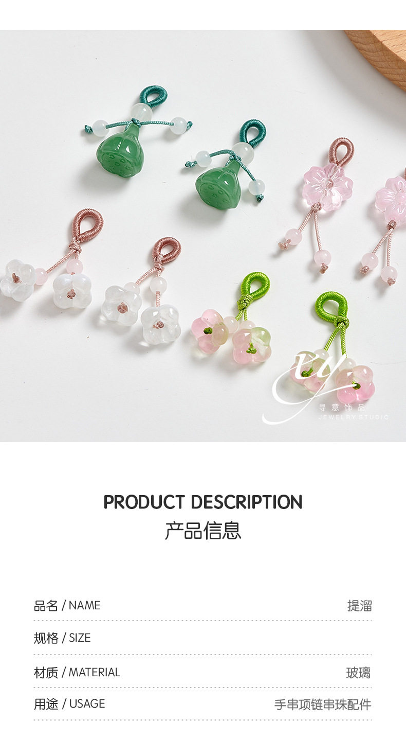 Glass Small Pendant for Tiktok Live Streaming Bracelet Accessory Lotus Pod Osmanthus Cherry Blossom Handmade DIY Bracelet Parts