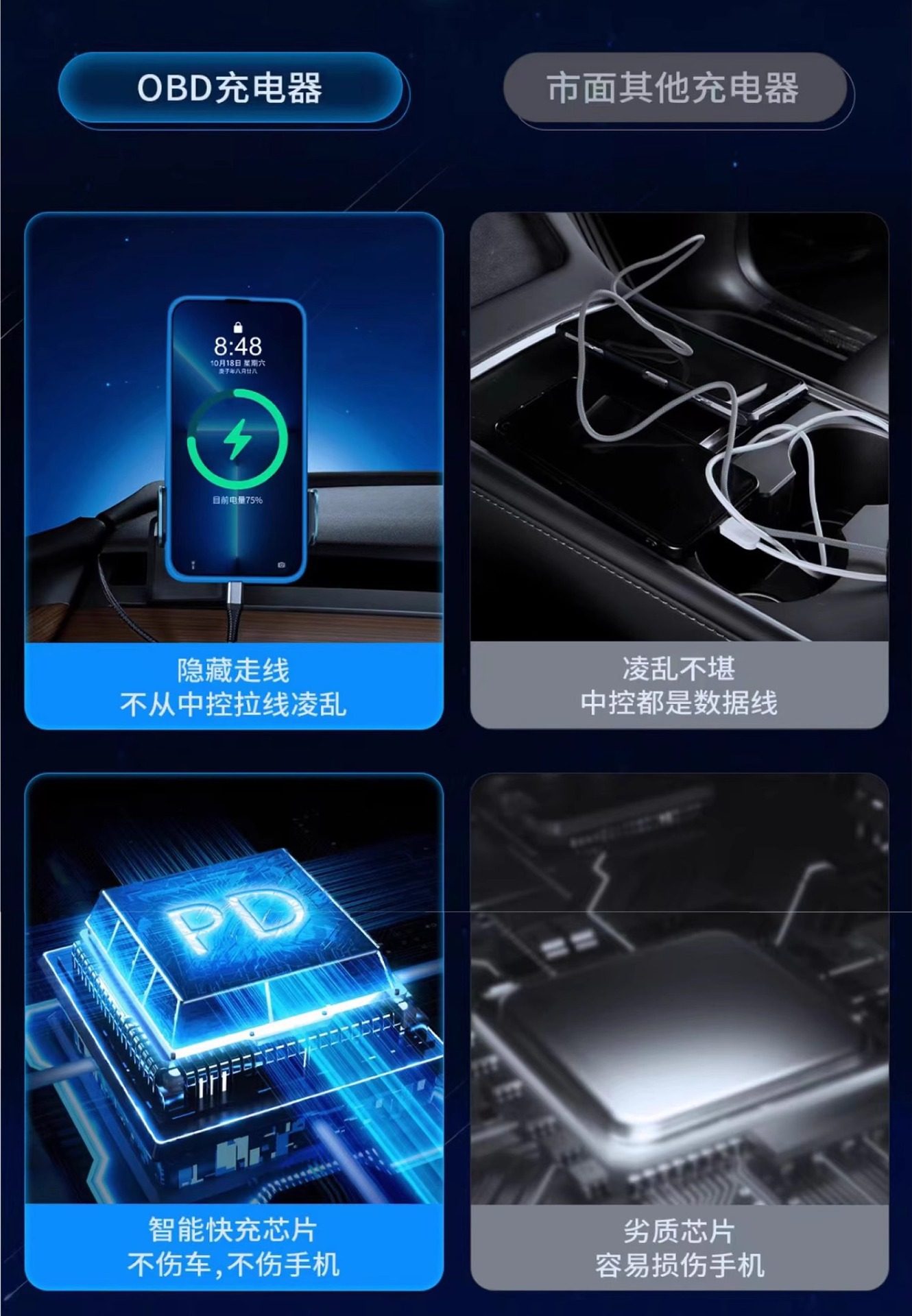 Suitable for Tesla Docking Station Model3 New 3/Y Dual-Port Obd Car Fast Charging Hidden Pd Charger