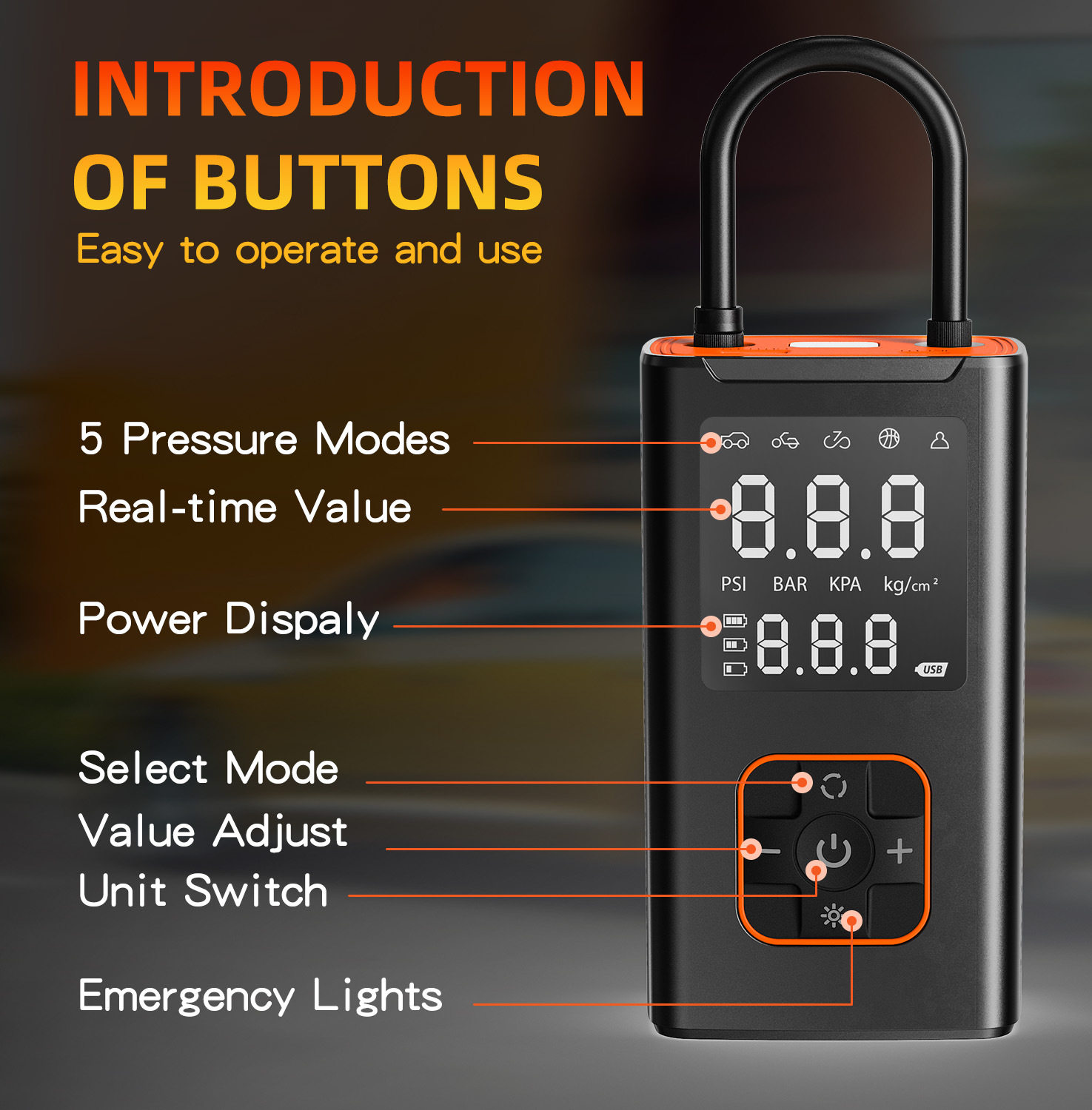 Car Air Pump 19 Cylinder 4000Mah Car Tire Air Pump Digital Display Portable Car Tire Air Pump