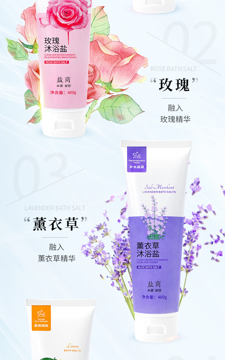 | Net content | Lavender bath salts,Milk bath salts,Rose bath salts,Aloe vera bath salts,Cucumber bath salts,Lemon bath salts,Cologne bath salts |