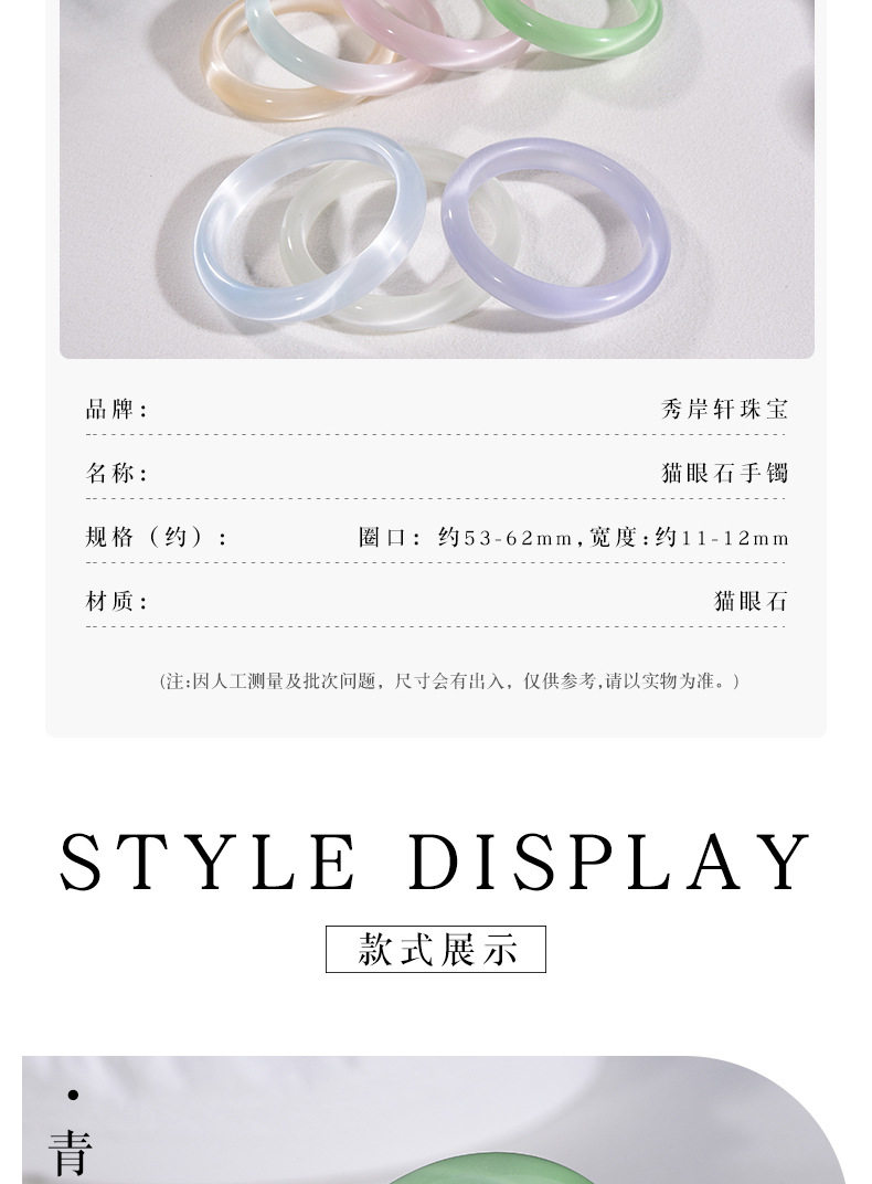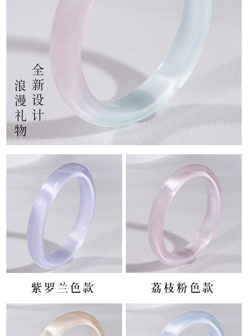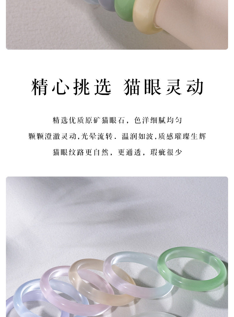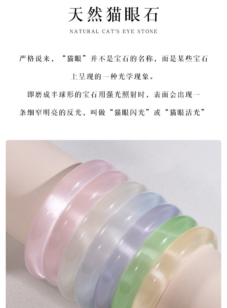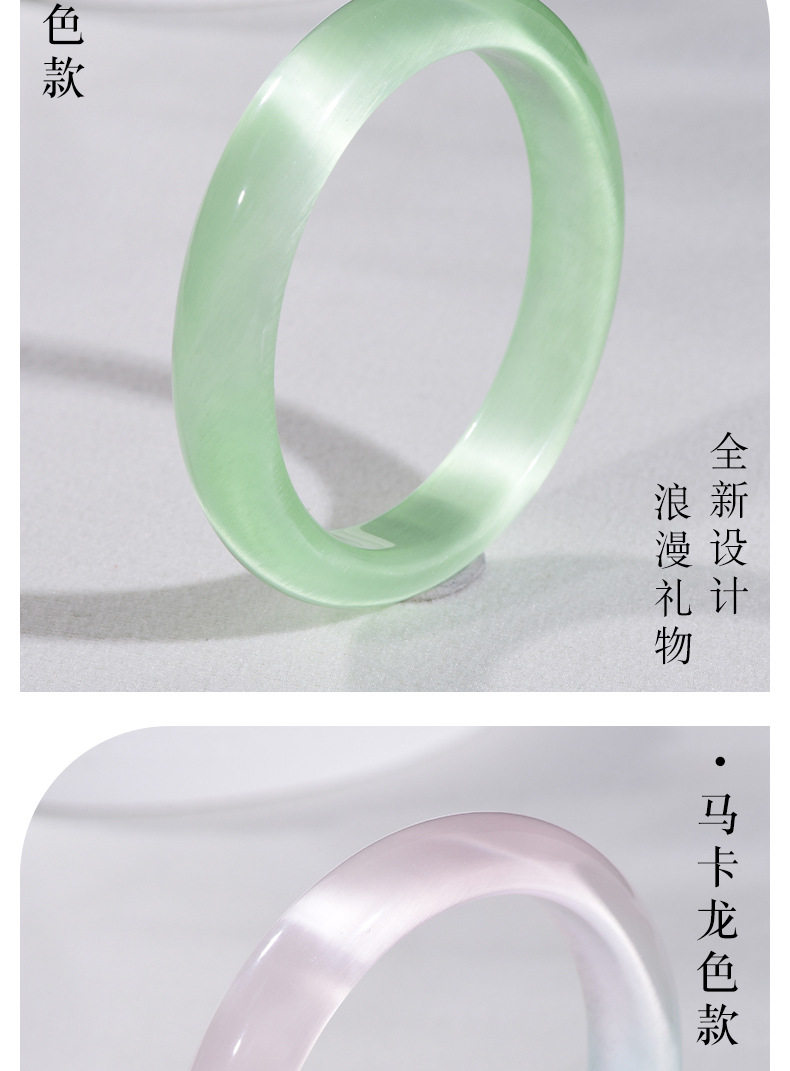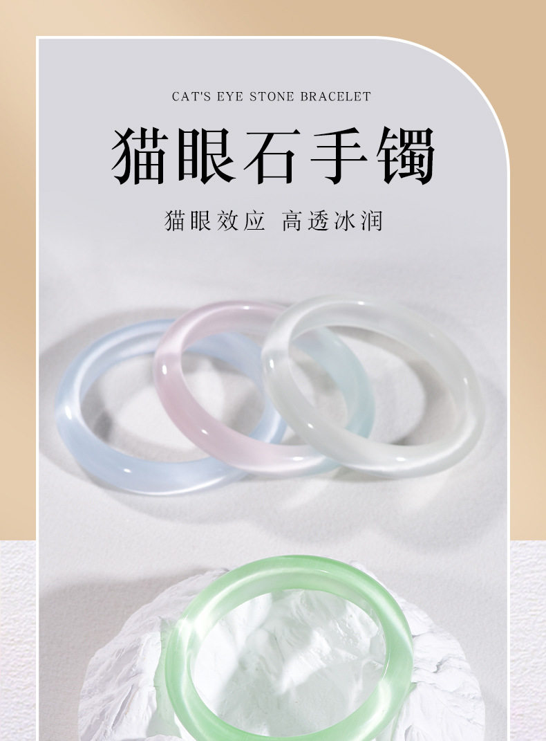 Wholesale Simple Cat's Eye Stone Bracelet Imitation Chalcedony Glass Jade Bracelet Women's Ice-Clear White Moonlight Bracelet Small Stall Goods